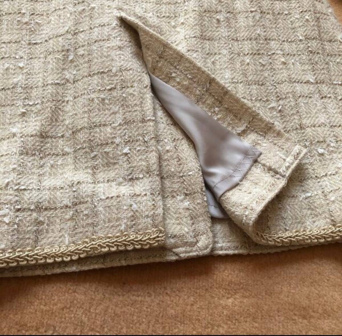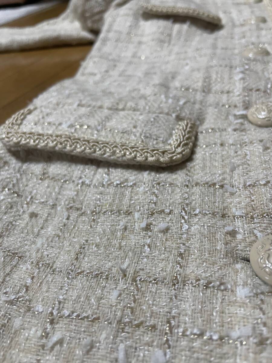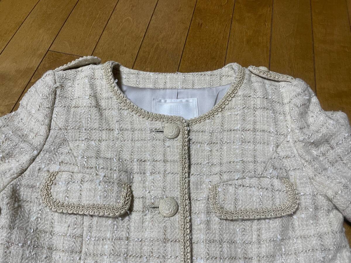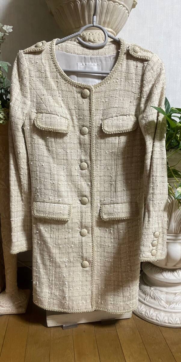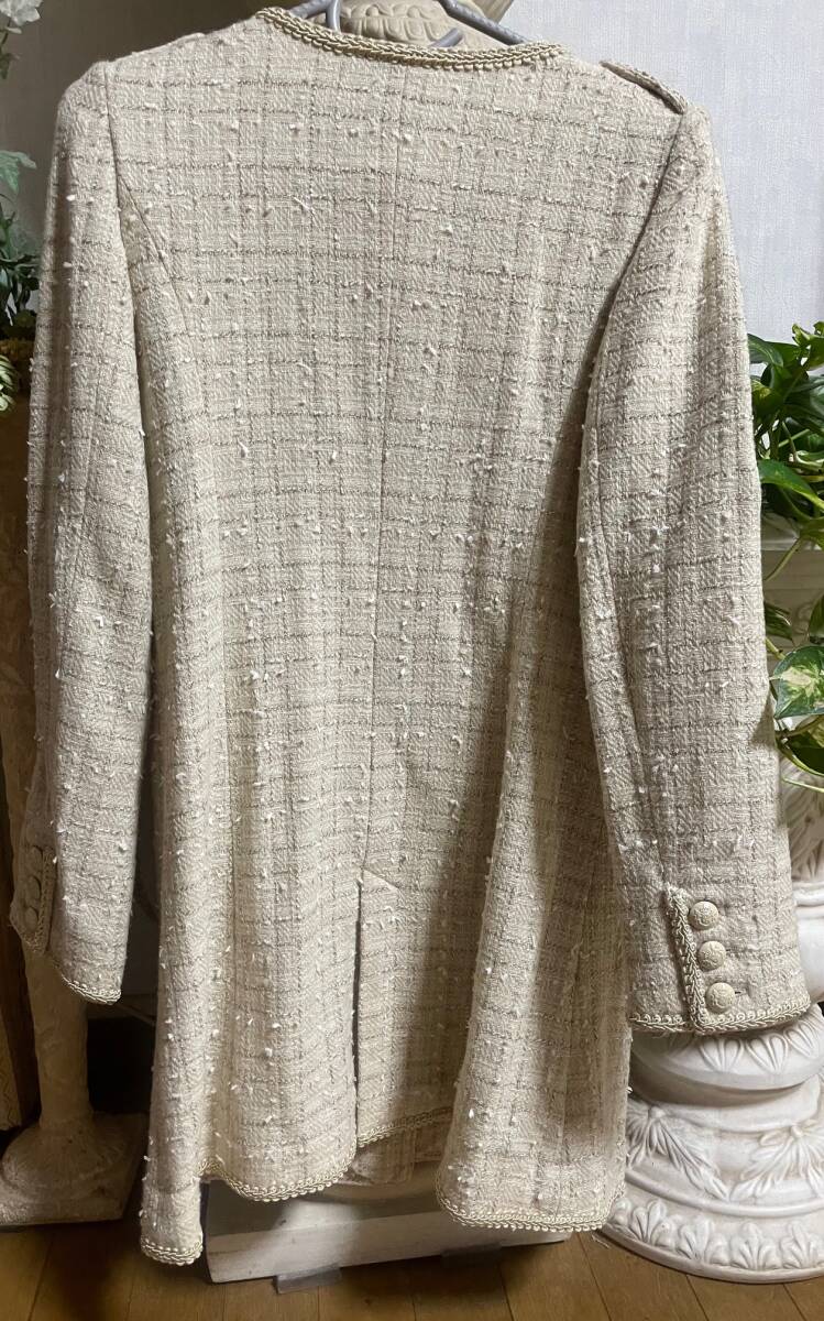 *carnelian アリシア M   ツイードコート 上着  ベージュ系 ノーカラーコート  新品未使用タグなし自宅保管です