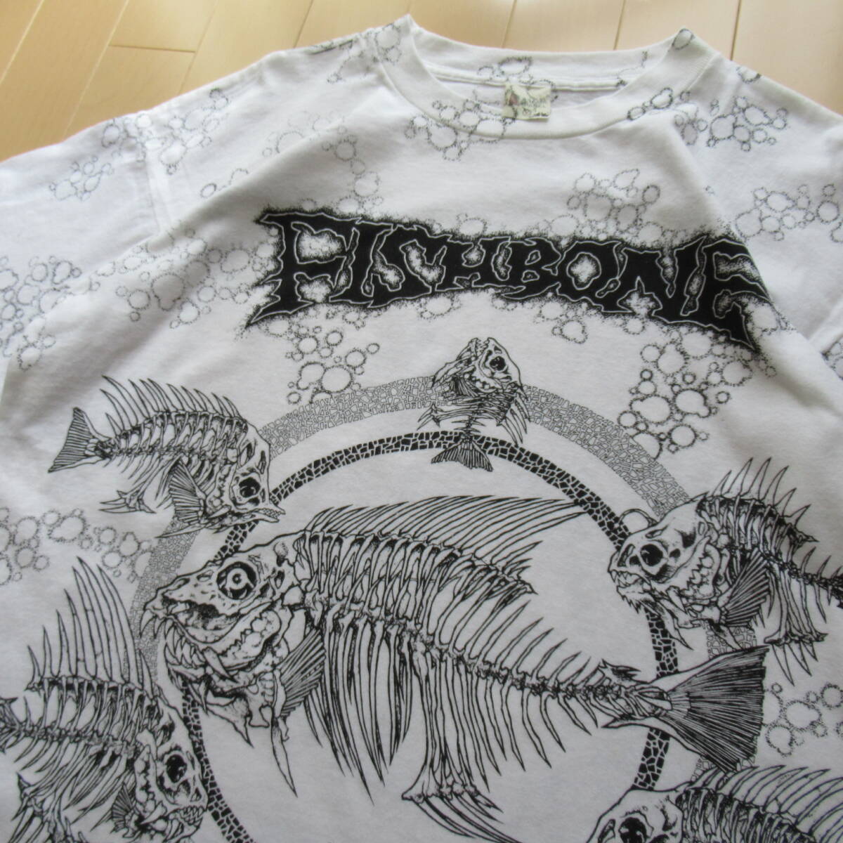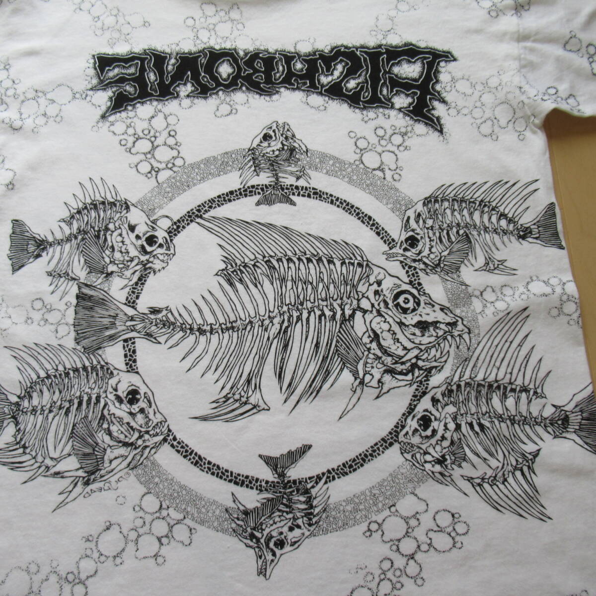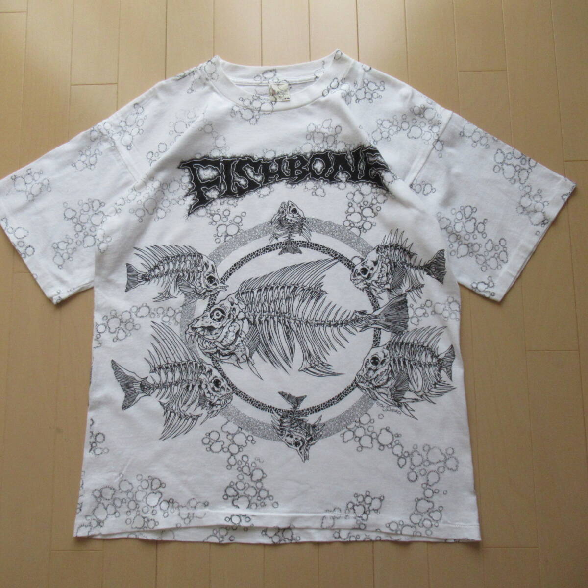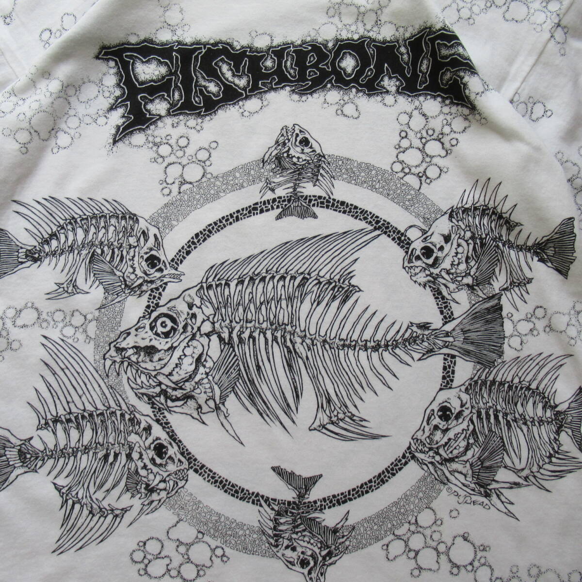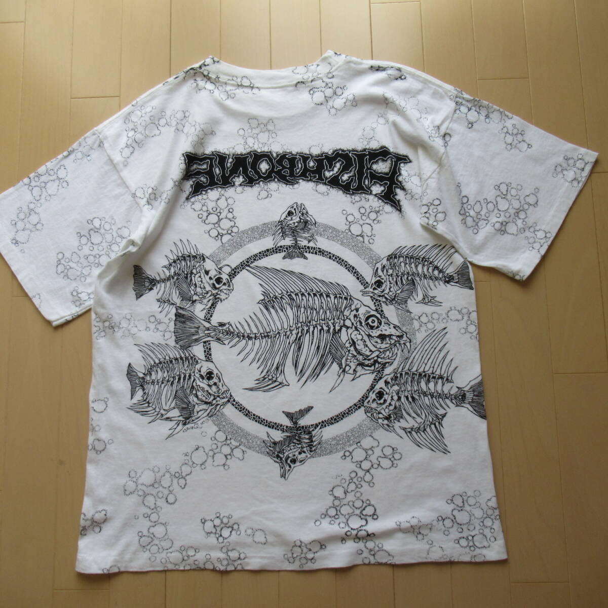 ★即決送込★当時物 pushead 90s USA製 半袖 T-shirs Tee Tシャツ M l xl 80s パスヘッド fish bone フッシュボーン 総柄 魚 skull