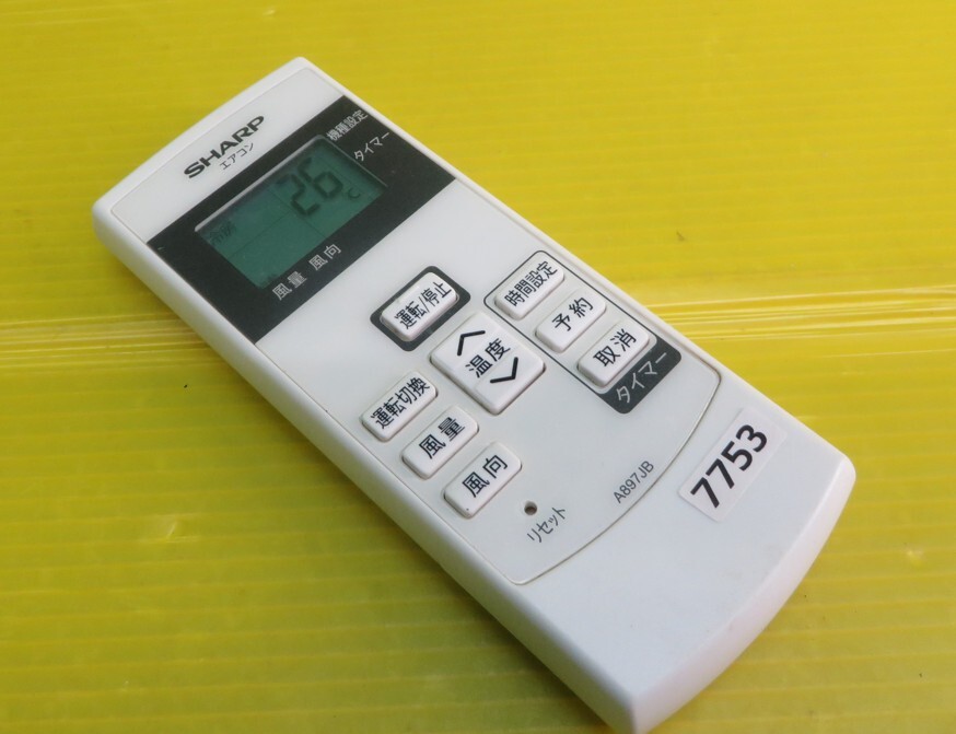 即発送!SH-7753■SHARP シャープ エアコン リモコン A897JB ■保護フィルム付  動作品 保証付