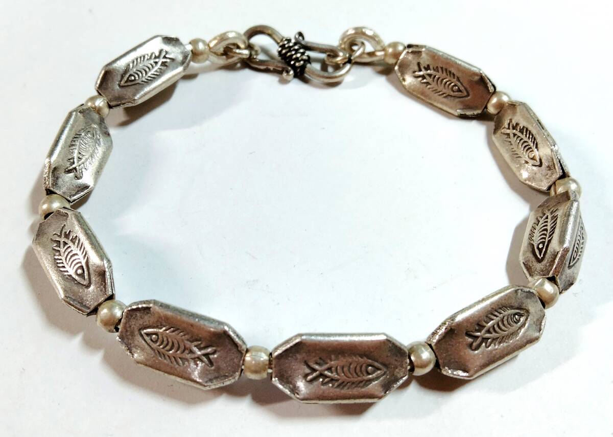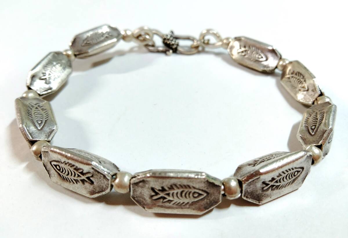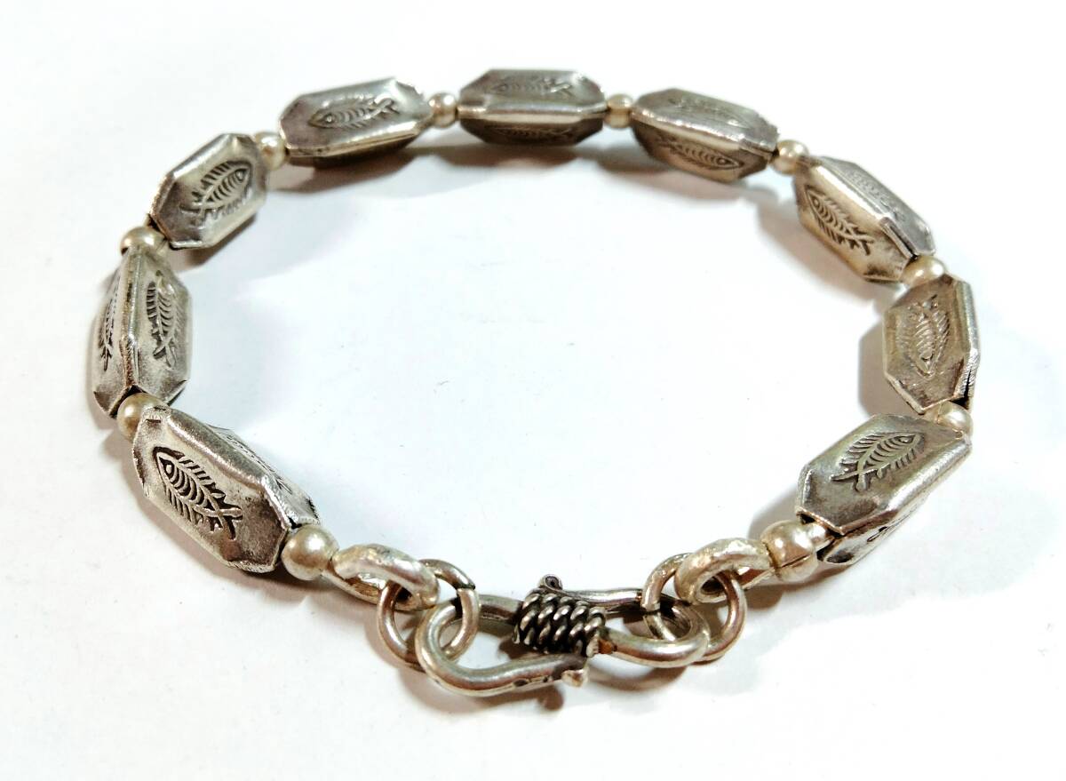 ◆カレン族シルバーブレスレット 魚 刻印ビーズ◆【09nb21】◆カレンシルバー ブレスレット 刻印 |