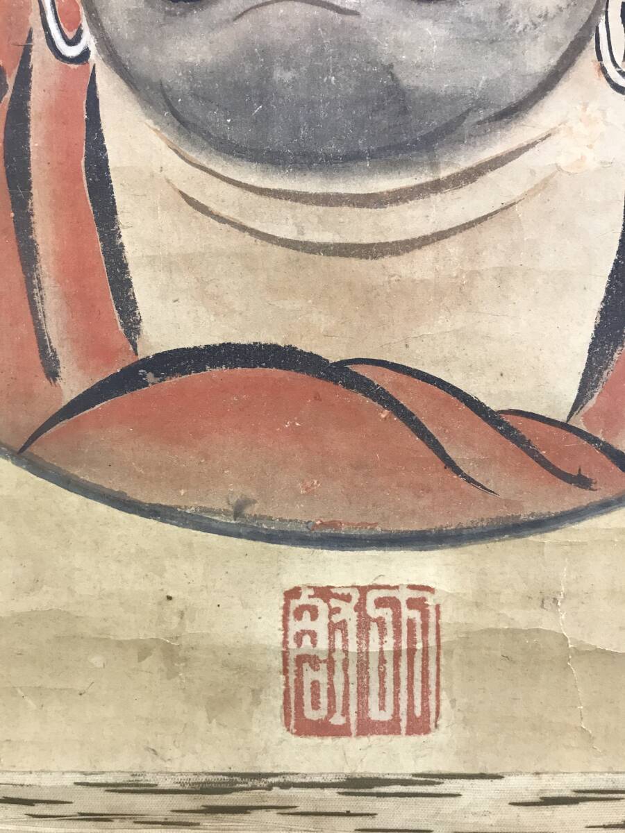 【作品状態】 本紙は紙本肉筆です。本紙は時代感あり、折れ、巻シワ、本紙切れあります。表装は多数の水シミ、汚れシミなどあります。