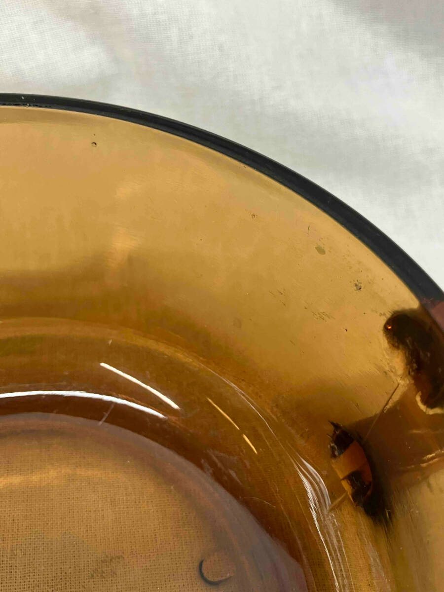 サイズ 高さ:約6.3cm 直径:約12cm 奥行:約15cm 本体の底面に異物混入有り。(ガラスを練り込む際に混入しているものと思われます。) 内側に気泡や汚れがございます。 写真にてご確認のうえご購入ください。 |