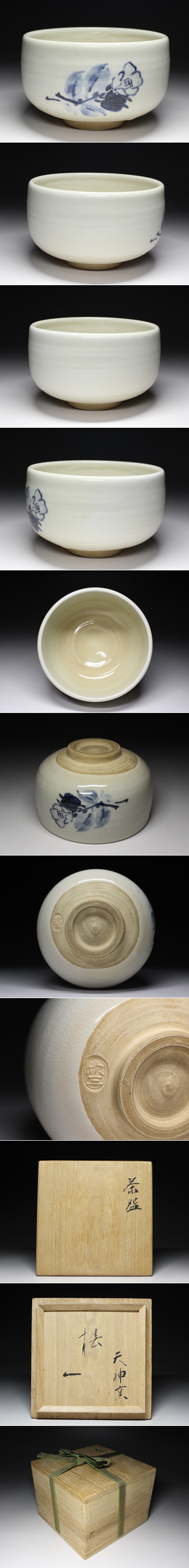 | ■天神窯■岡本欣三・椿絵・茶碗・共箱・f2155h | ||||||||||||||||||||