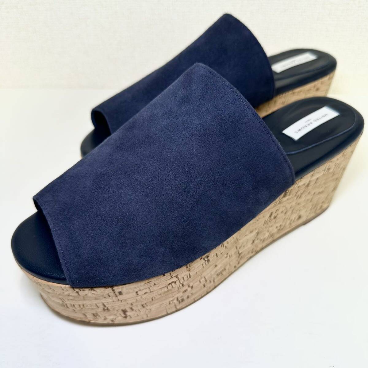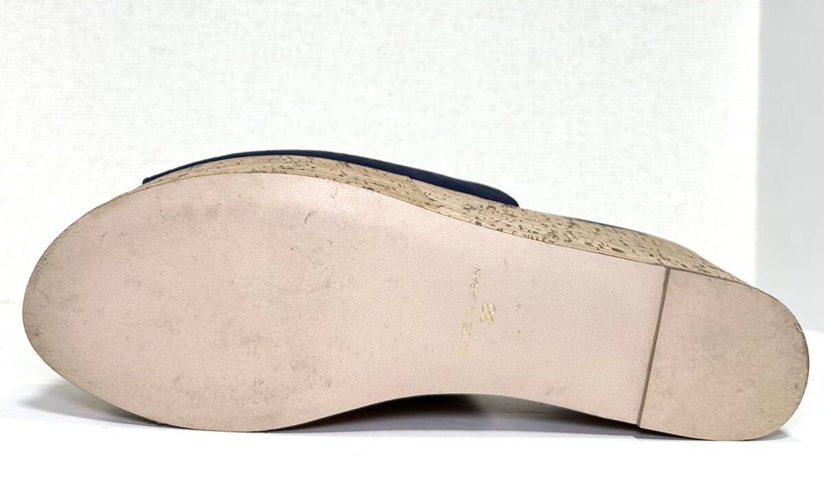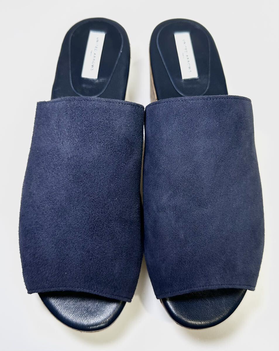 即決/美品/UNITED ARROWS ユナイテッドアローズ 38 24.0㎝/ネイビー/レディース/革靴/スエード ウェッジソール サンダル/マリン/ブルー/コルク