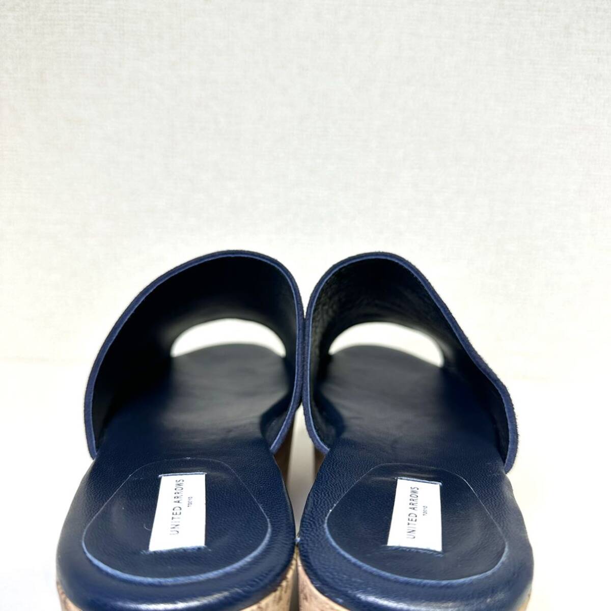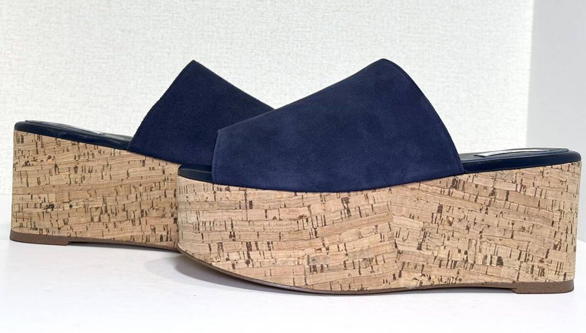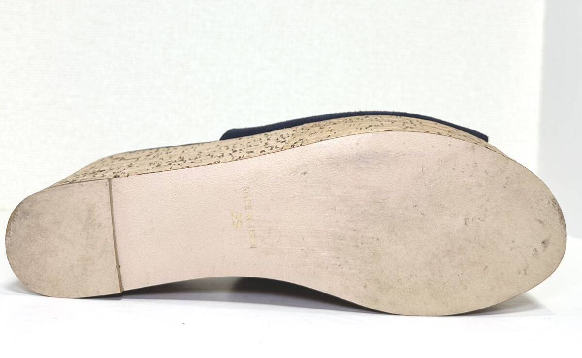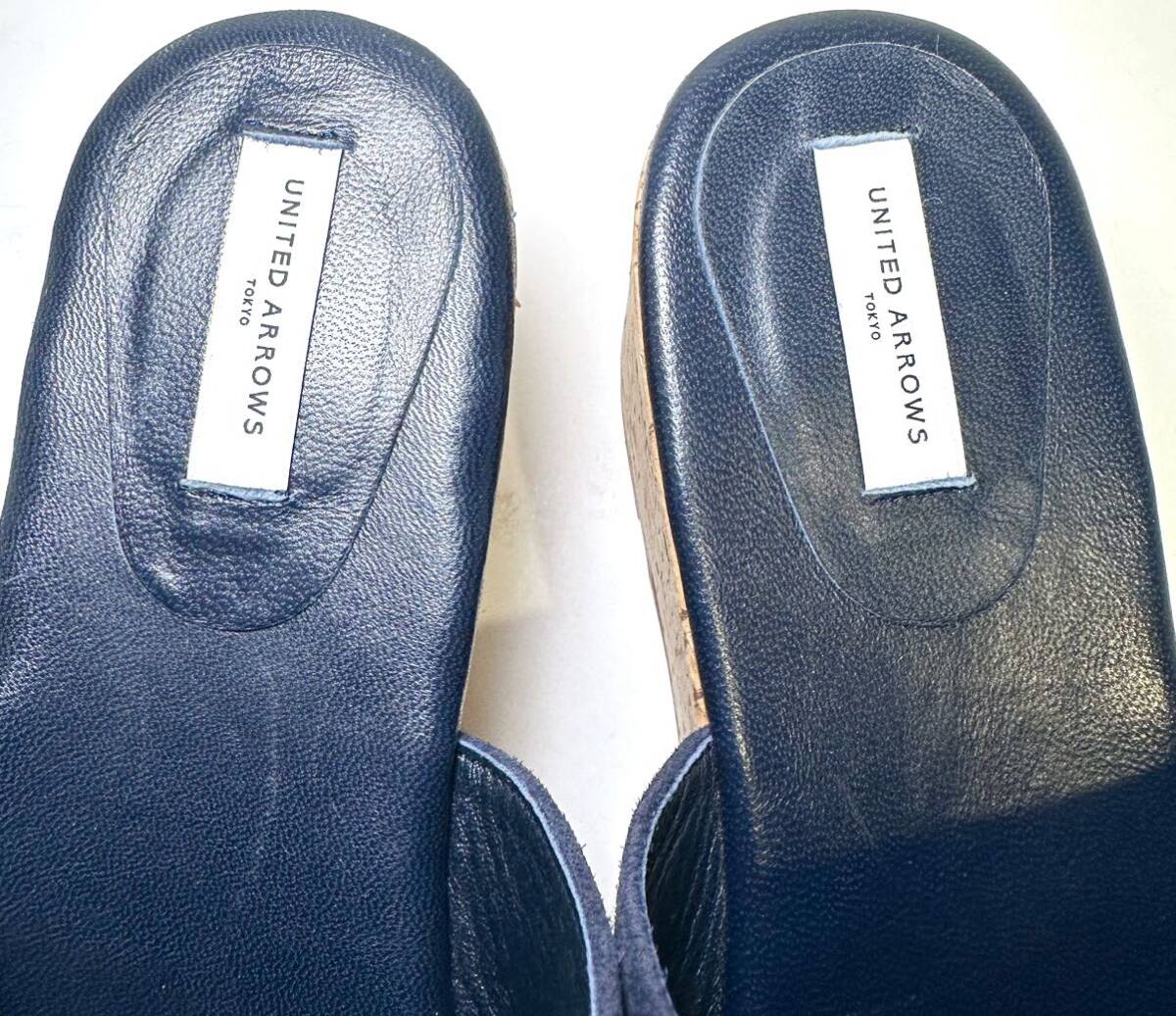 即決/美品/UNITED ARROWS ユナイテッドアローズ 38 24.0㎝/ネイビー/レディース/革靴/スエード ウェッジソール サンダル/マリン/ブルー/コルク