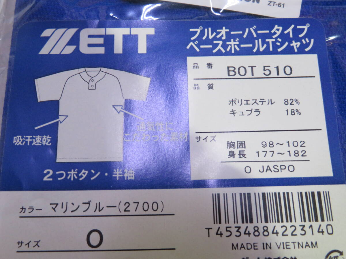 165 ゼット 2ボタンベースボールシャツ マリンブルーO
