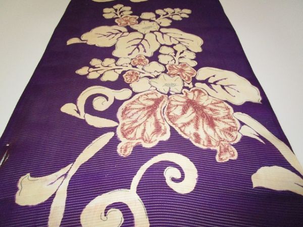 E-54★紫地*桐*正絹*絽*古布はぎれ★文化人形/一閑張り/吊るし雛/市松人形