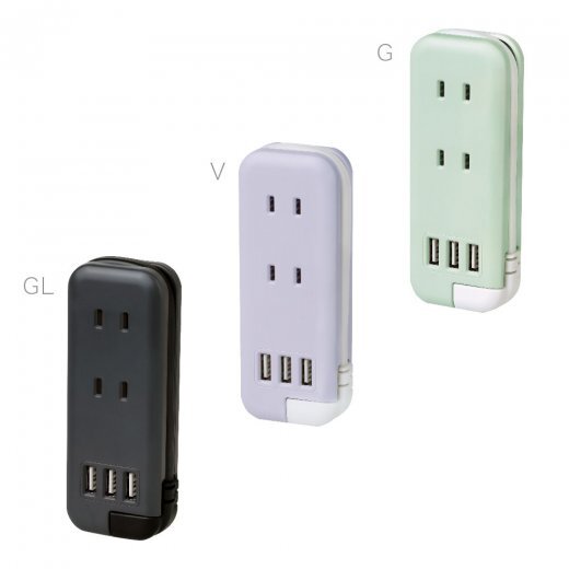 ○3つのUSBポート付+収納できるコードで持ち運び使用にも最適!従来品より約20%スリム&コンパクトに。