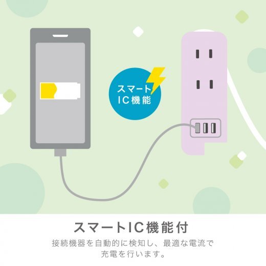 ○スマートIC機能で、接続機器を自動的に検知し、最適な電流で充電を行います。