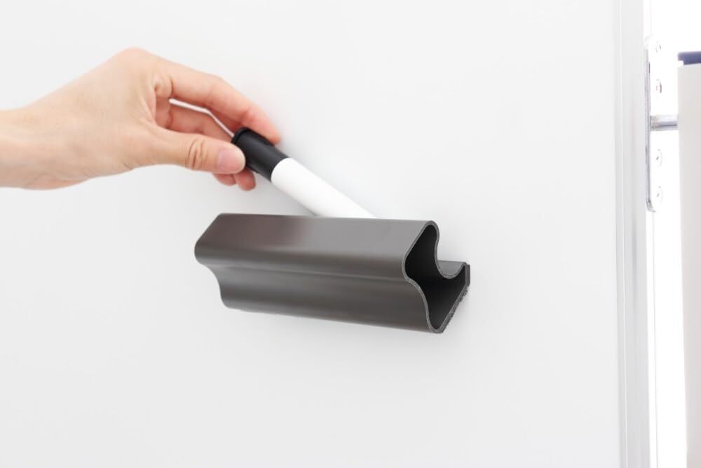 強力マグネットで、スチール製ホワイトボードにしっかり固定。邪魔になりません。