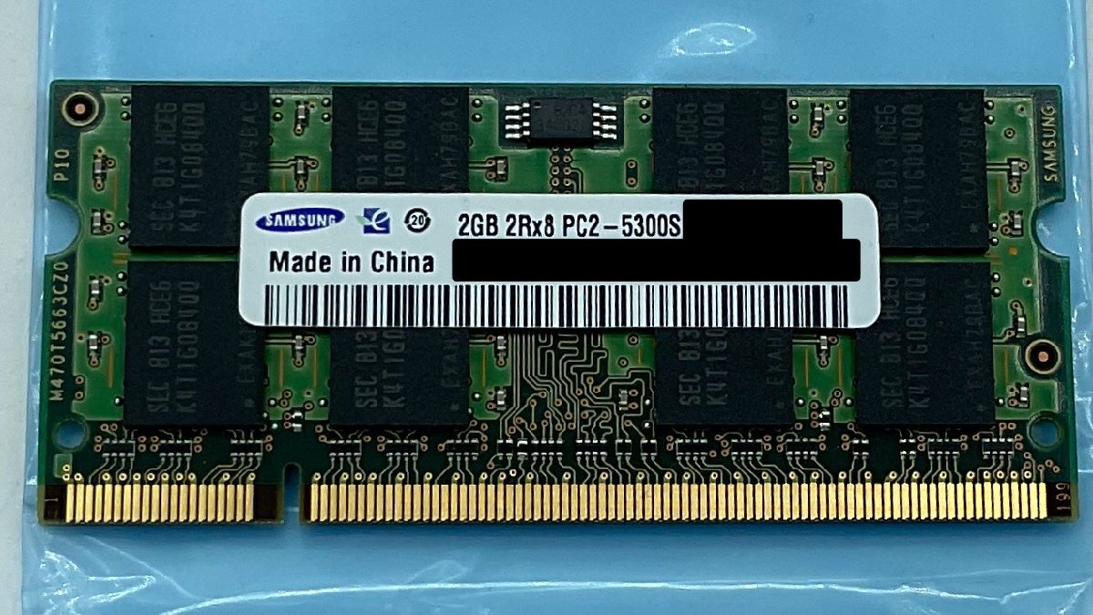 PC2-5300 2GB*1枚 ノート用メモリとなります。ノートパソコンより抜き取りの中古品となります。梱包材に包んでクリックポストで発送します。到着後1週間の返金保証でお願いします。写真はあくまで一例のため、別メーカー、別商品が届くことがありますがPC2-5300 2GBのノート用メモリとなります。メーカーなどの指定は在庫があるときに限り、お問い合わせいただけましたら対応させていただきます。
