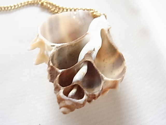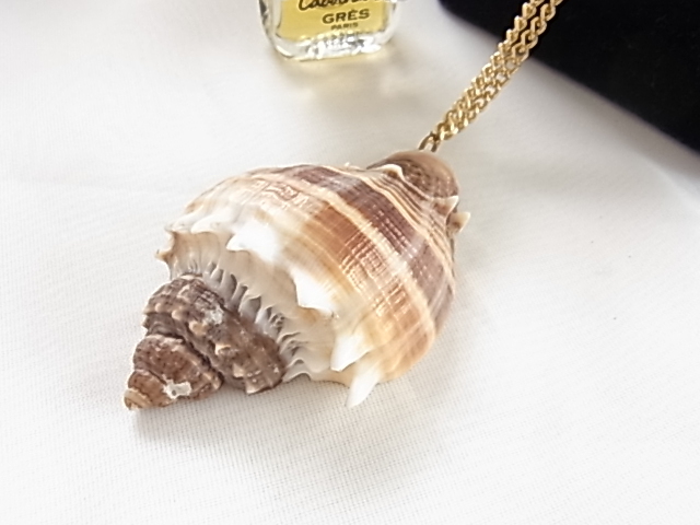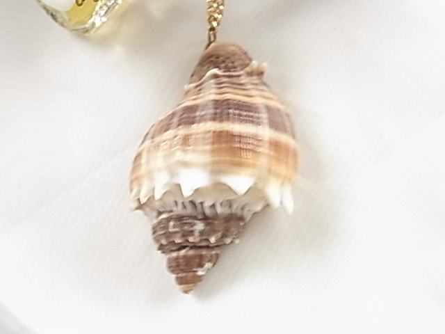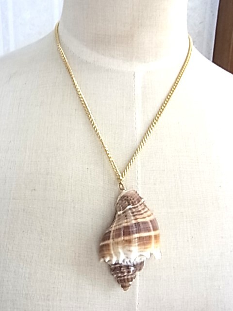 ビンテージ/ヴィンテージ 大き目存在感のククリボラのような貝殻のトップ ほら貝ホラ貝 インパクト感 軽量 レトロのネックレス●●
