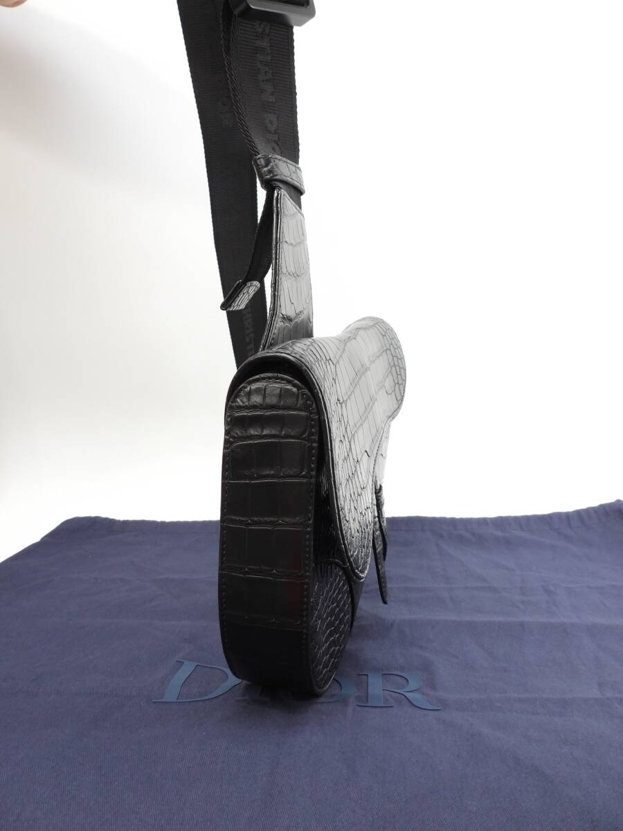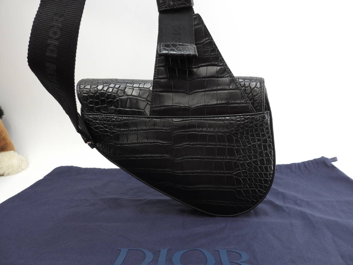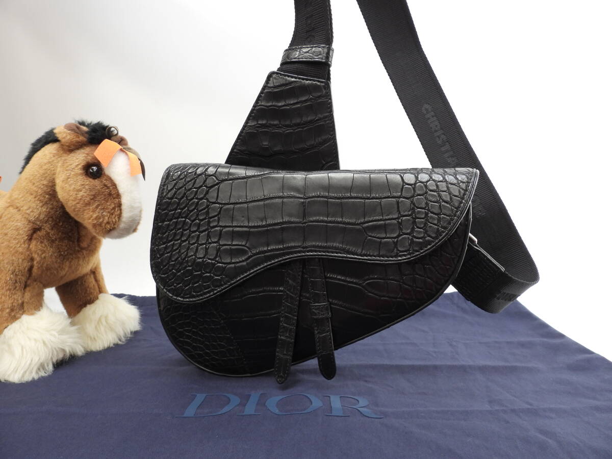 クリスチャンディオール クロスボディバッグ サドルバッグ クロコダイルレザー黒 新品同様@ 2