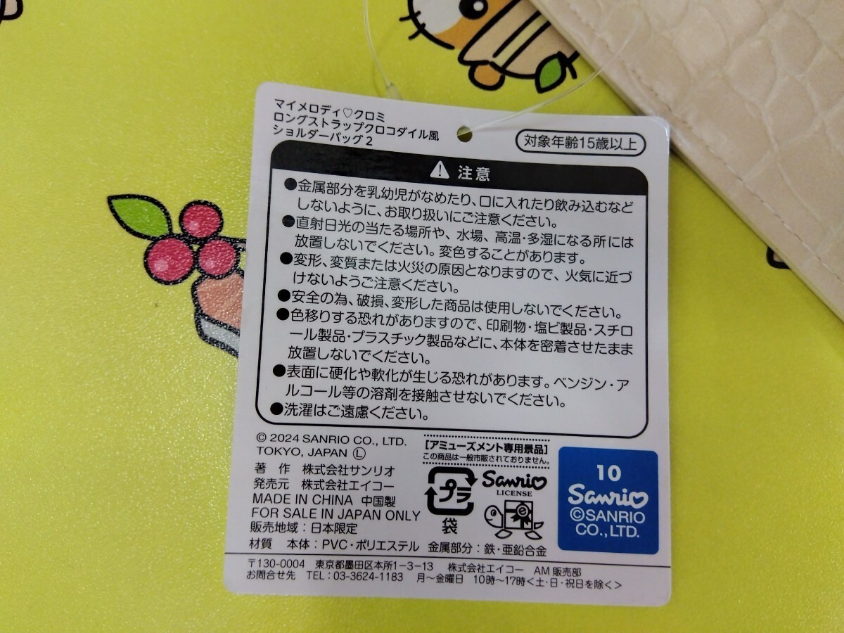 マイメロディ、ロングストラップクロコダイル風ショルダーバッグ2ホワイト未使用品です。