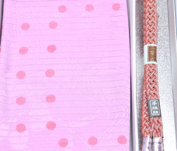 | 寸法 | 帯揚げ 長さ:165cm 幅:30cm(中央部分を測っています) 帯締め 長さ:150cm(房は測っていません) 幅:1,0cm |