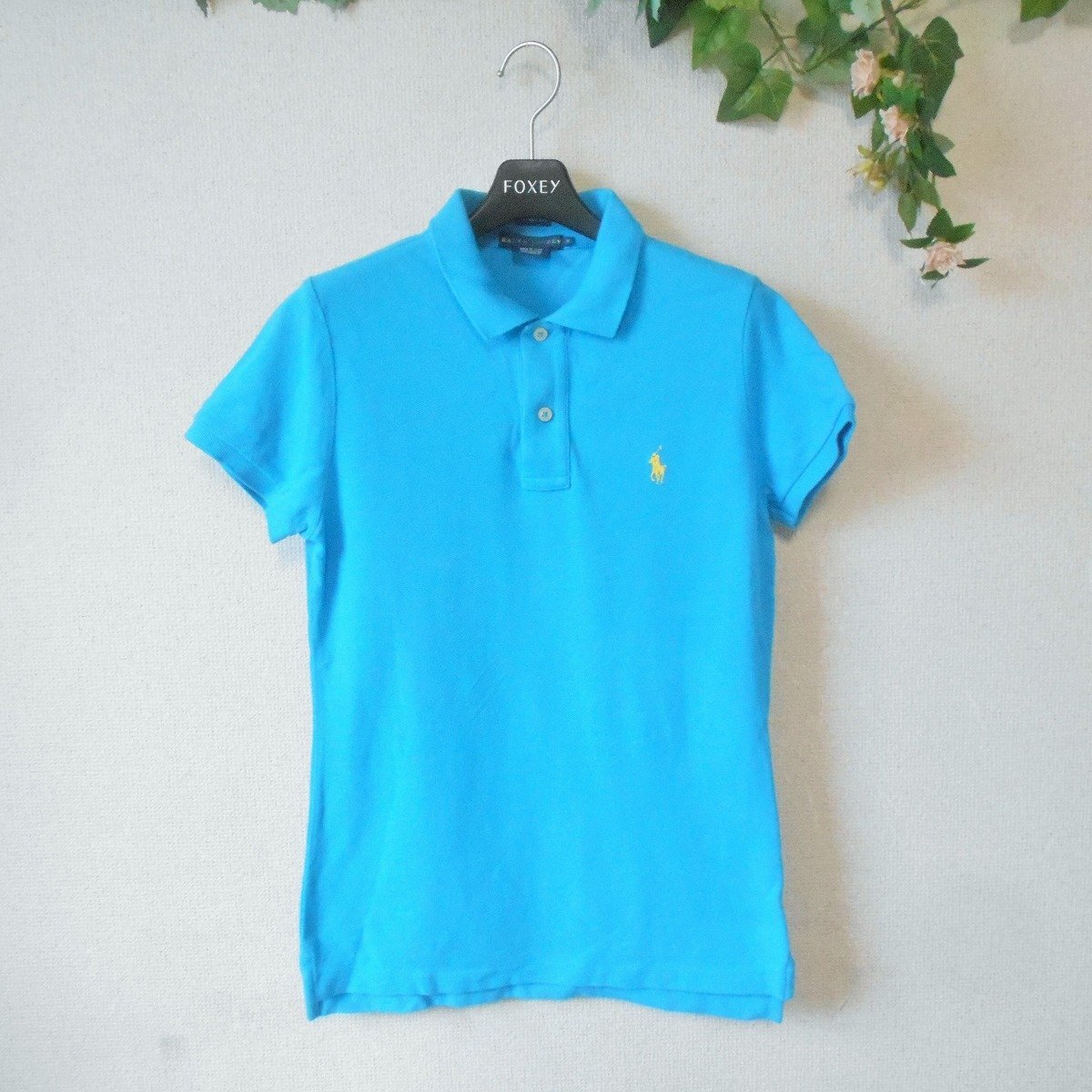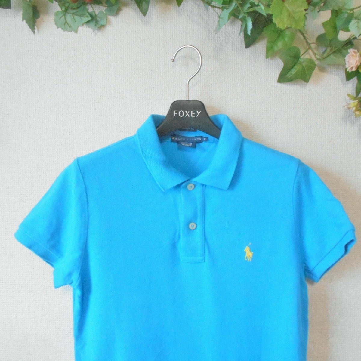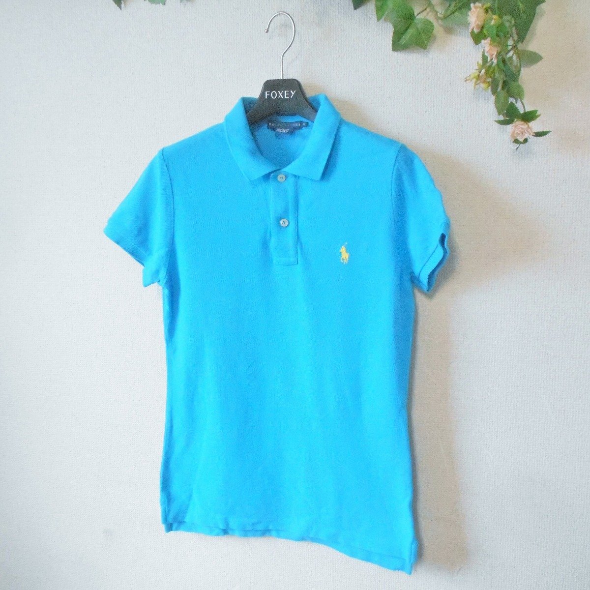 【ポイント】ラルフローレンのレディース用ポロシャツになります。お色は薄めのブルー(濃い水色?)で、黄色の刺繍が入っています。