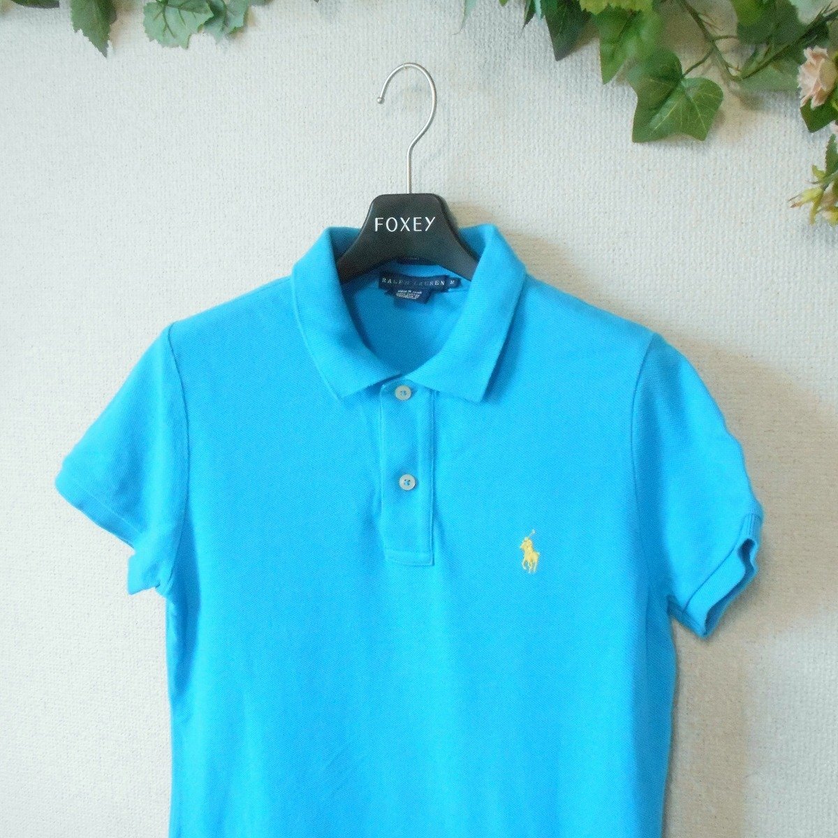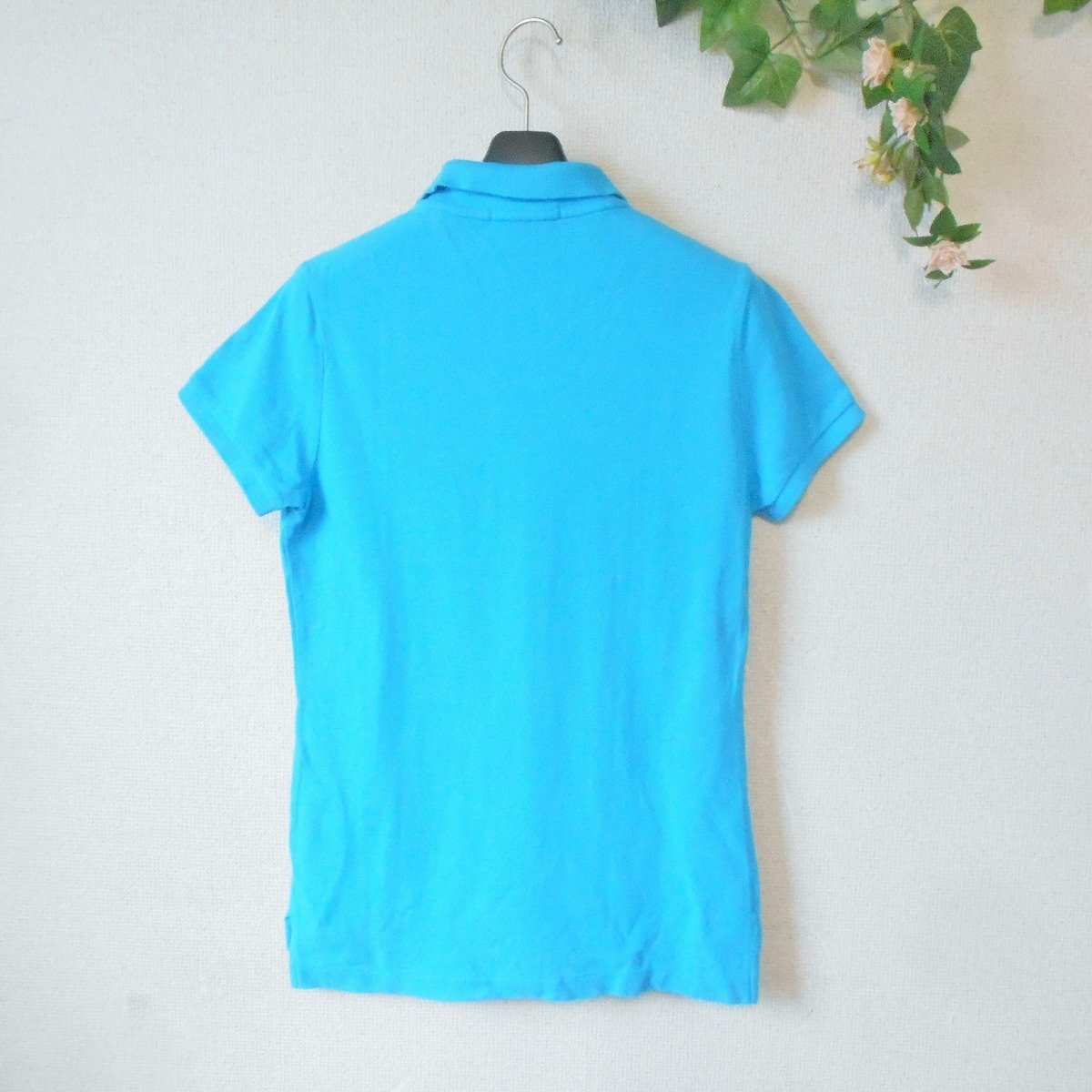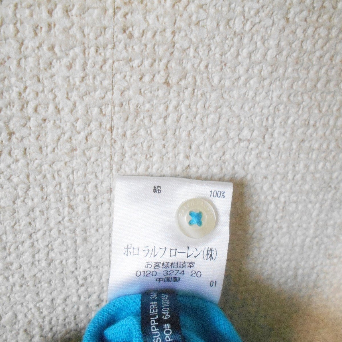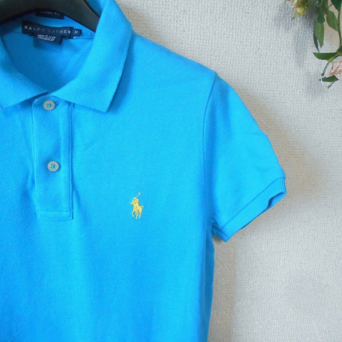 【ポイント】ラルフローレンのレディース用ポロシャツになります。お色は薄めのブルー(濃い水色?)で、黄色の刺繍が入っています。