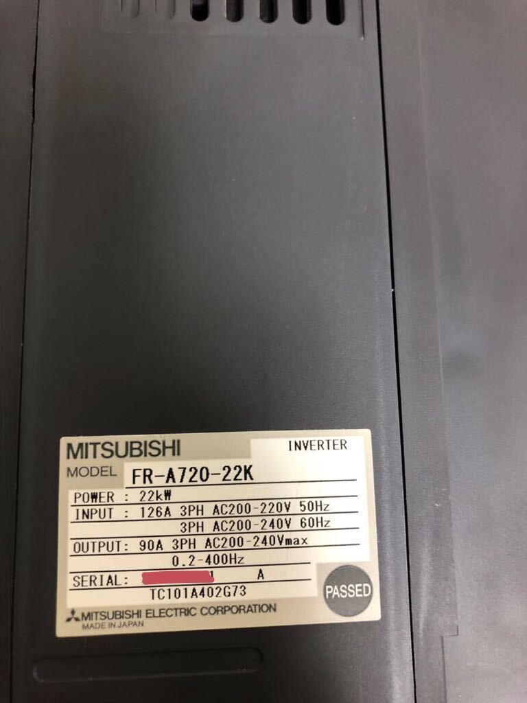 中古美品(動作確認済み)三菱電機インバーターFR-A720-22K の動作保証品です