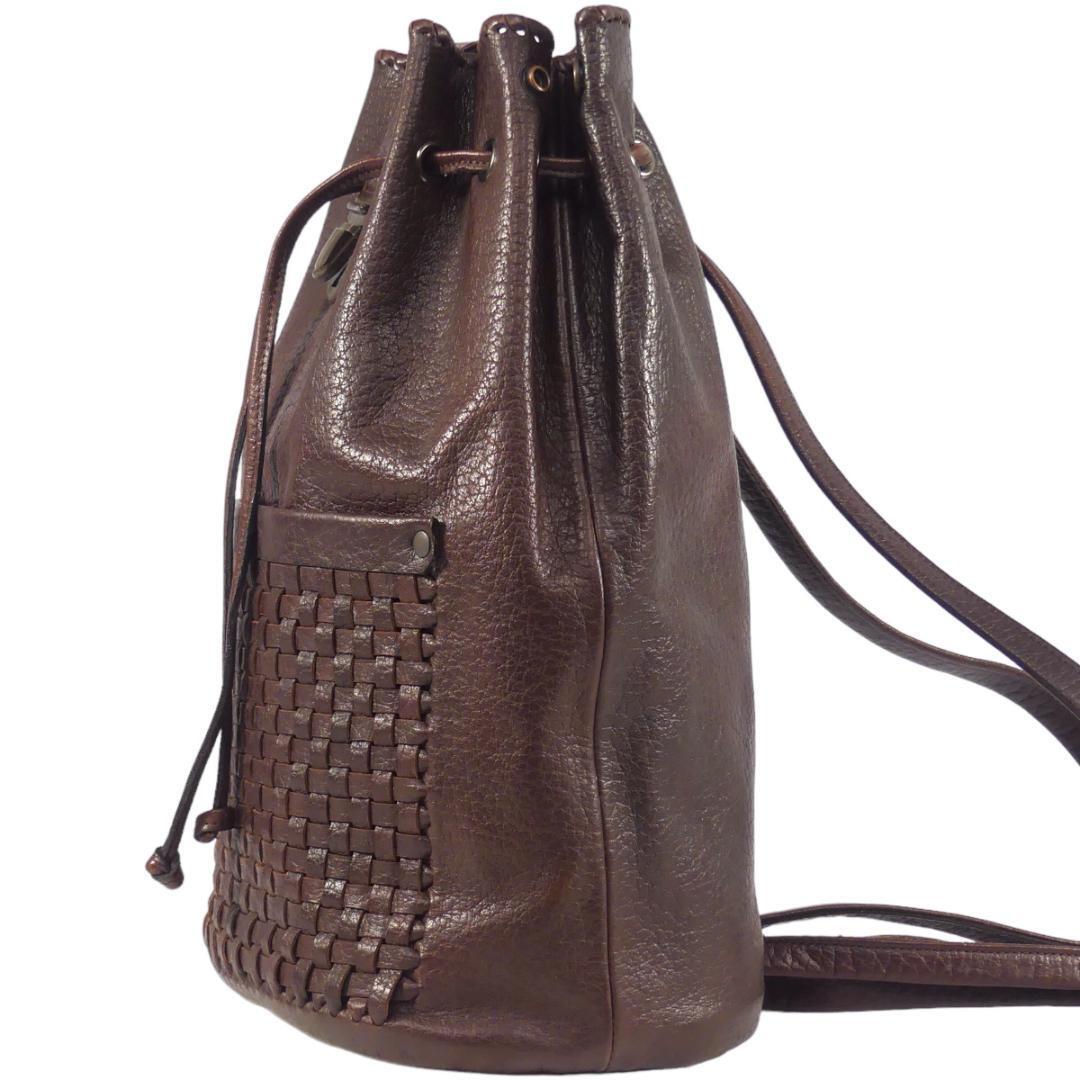 即決★N.B.★レザーリュック メンズ レディース 茶 編込み 本革 バックパック 本皮 カバン 旅行 鞄