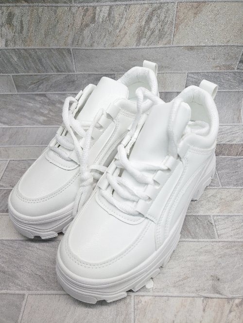 ◇ ノーブランド ダッド 厚底 スニーカー シューズ 表記なし 約23.5cm相当 ホワイト レディース P