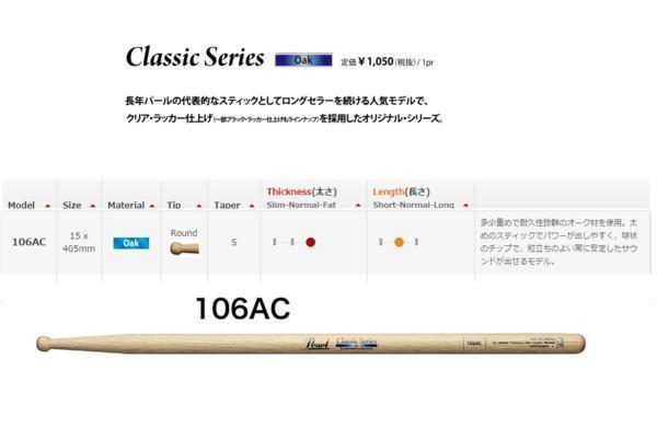 Pearl オークドラムスティック  106AC(村上“ポンタ”秀一モデル) 1ペア