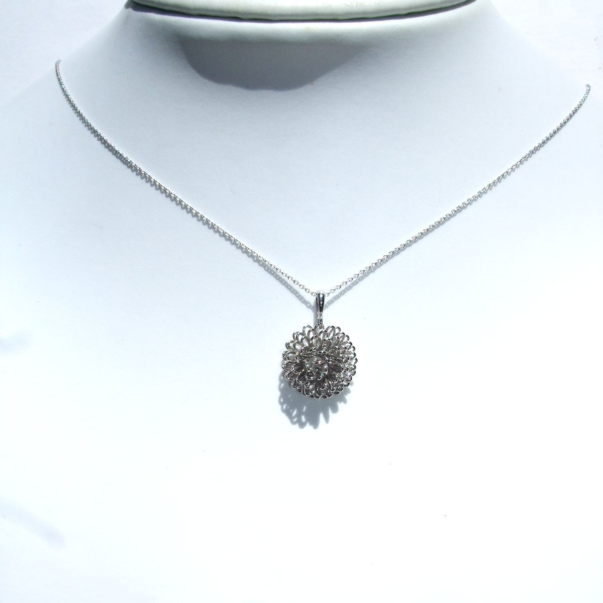 ワイヤーアートで立体感をお楽しみいただける上品なダリアのネックレス