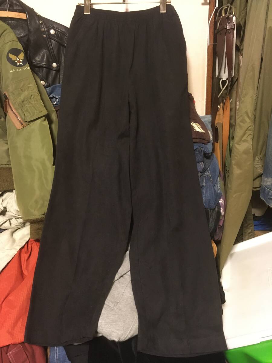 サイズは12 (実寸ウエスト約74~100cm股下約67cm股上ヒップサイドで約40cmワタリ約31cm裾幅約19cmサイド総丈約96cm)です。