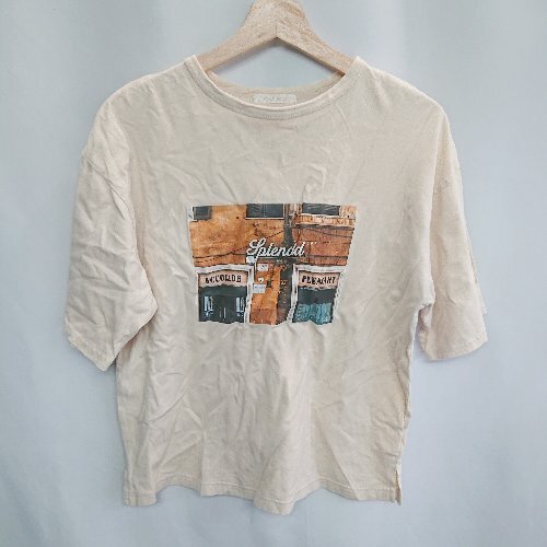 ◇ ehka sopo エヘカソポ クルーネック プリント 半袖 Tシャツ カットソー サイズF アイボリー系 レディース E