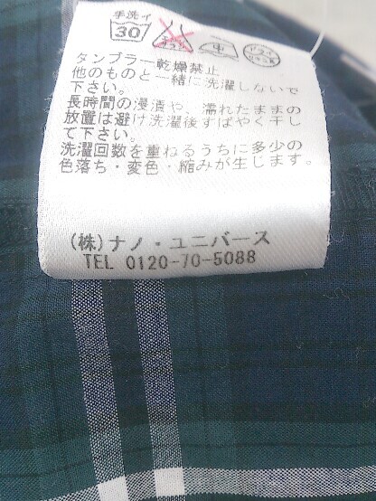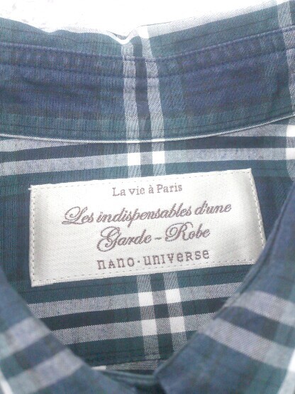 ◇ nano universe ナノユニバース 長袖 チェック シャツ ネイビー グリーン *