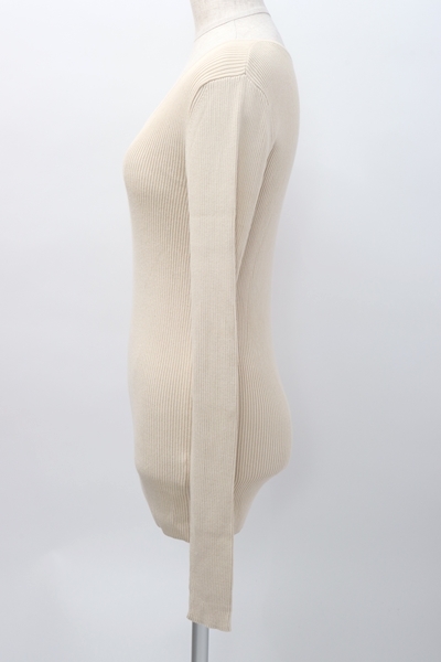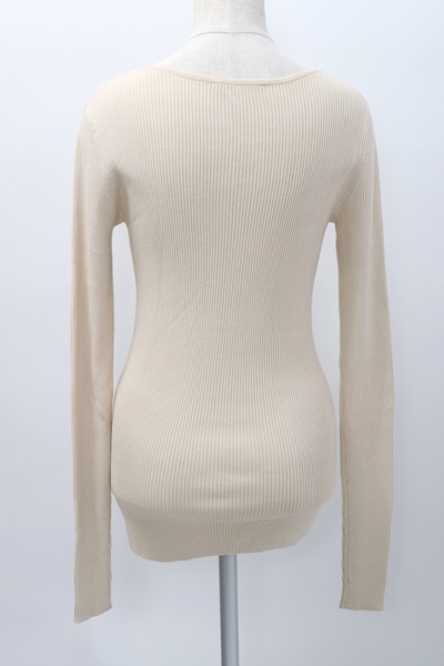 透け感なし 裏地なし ストレッチなし 開閉デザインなし 付属品(取り外し可)なし 商品情報デコルテラインを綺麗に見せてくれる広めなVネックのバランス。 程よくフィットするリブニットは春に欠かせないアイテム。 バギーパンツやマキシスカートに合わせて。 長めの手元が隠れる袖丈が今の気分にぴったりのシルエットです。 |