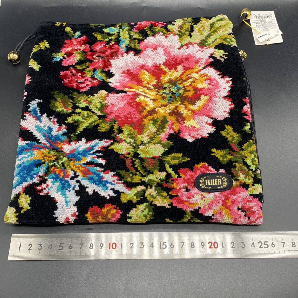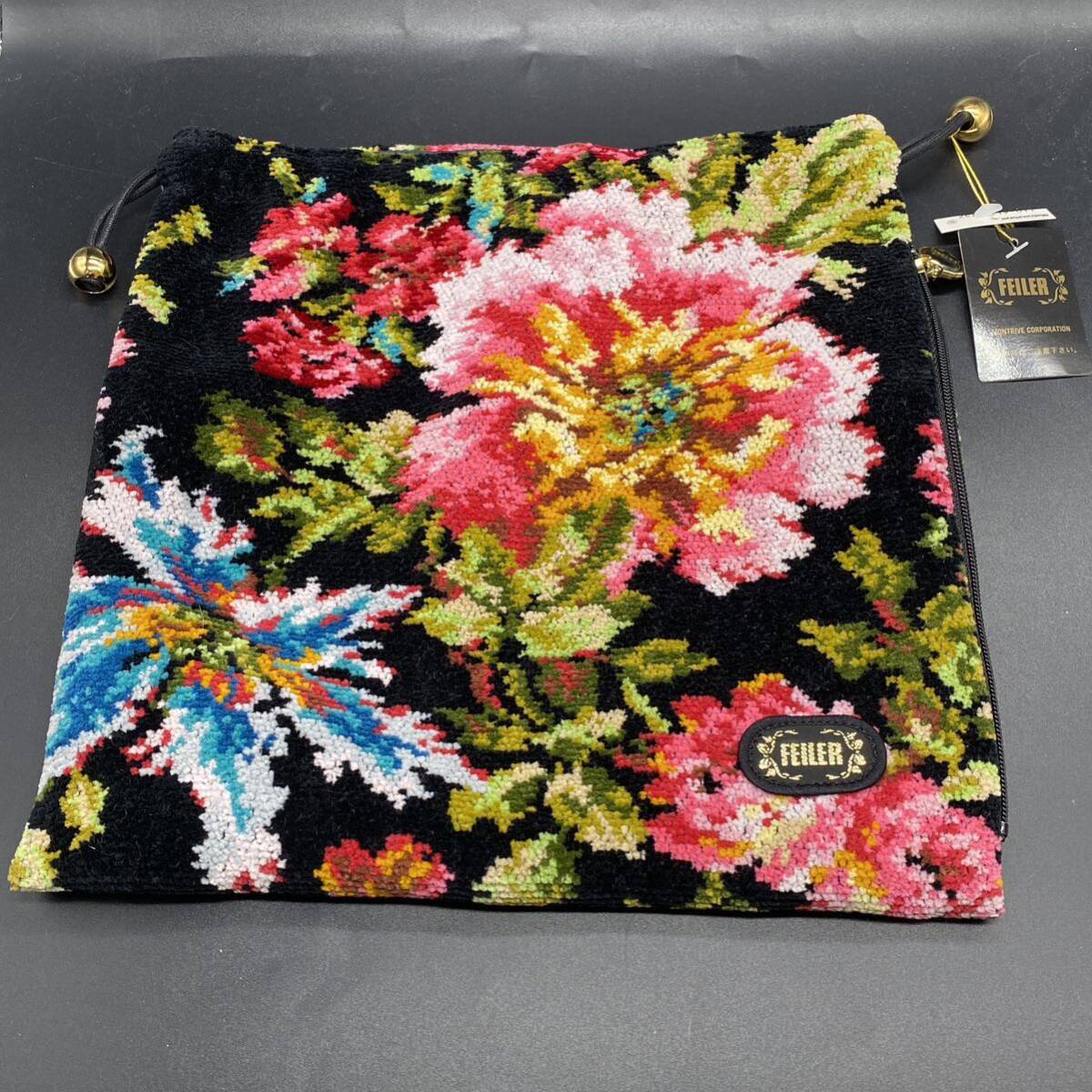 タグ付き FEILER フェイラー 巾着袋 巾着ポーチ 小物入れ ブラック 花柄 ブルー レッド no.109