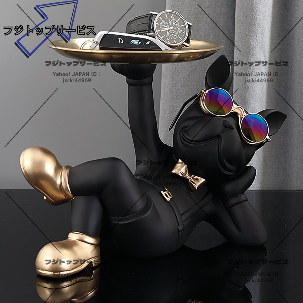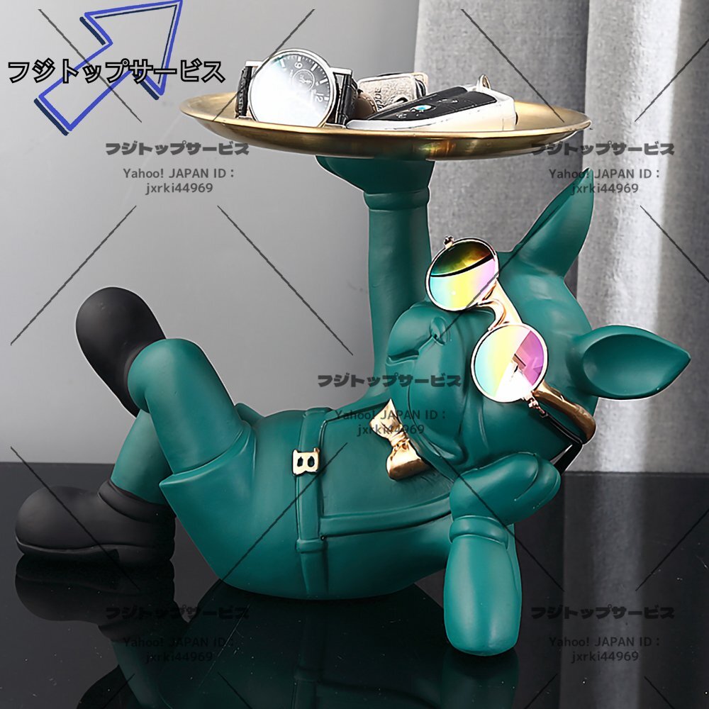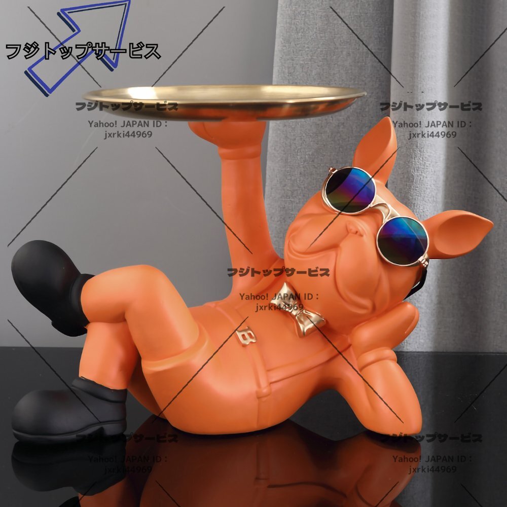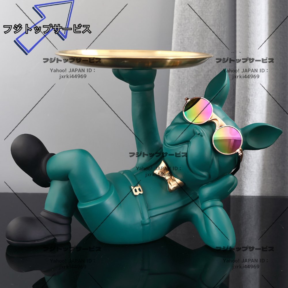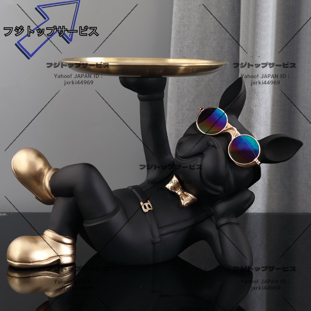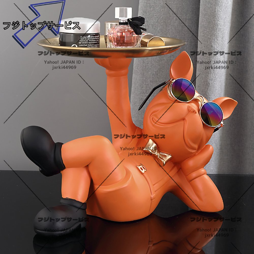 強くお勧め★フレンチブルドッグの家の装飾 犬の像 テーブルの装飾 ステンレス鋼のトレイ 動物の置物 おしゃれ