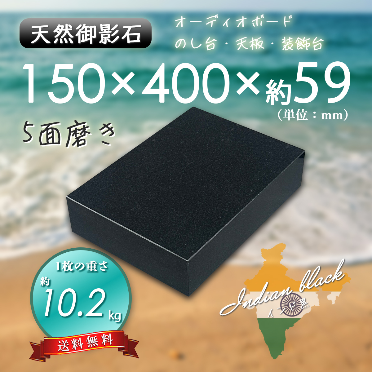 【高級天然御影石】 オーディオボード 台座 黒系 150mm×400mm×59mm 5面磨き 新品 即決 送料無料 ★超特価★