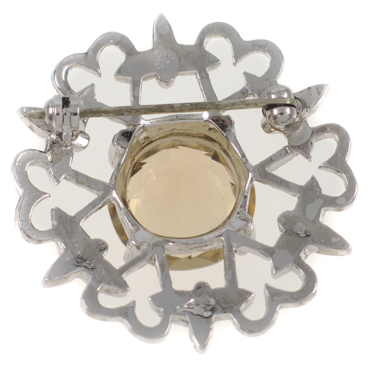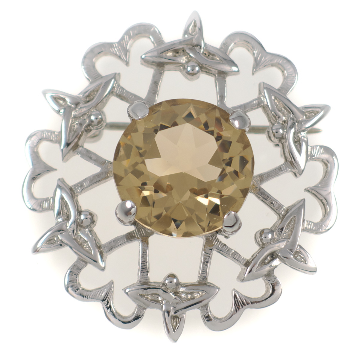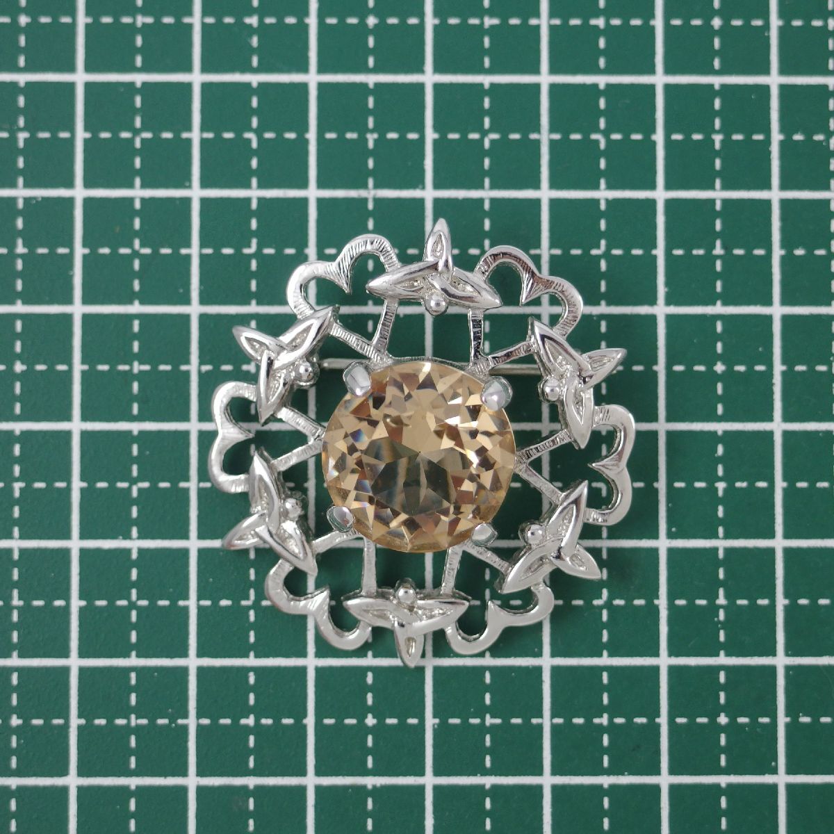 UK2120◆ フラワーモチーフ トリケトラ&ハート うすいブラウン系ストーン バイキング ケルト イギリス 英国 ◆ ヴィンテージブローチ ◆