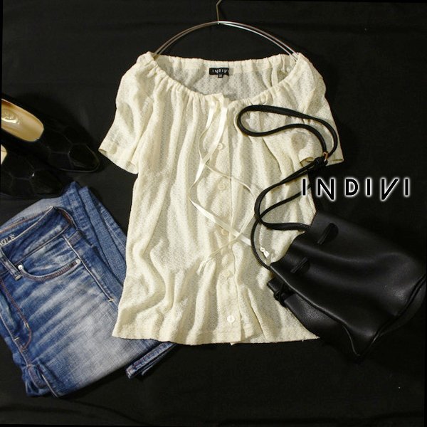 美品 INDIVI インディヴィ 可愛い 刺繍入り 透けストレッチ カーディガン 38号 M 春 夏 24C07