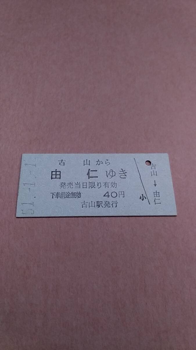 国鉄 室蘭本線 古山から由仁ゆき 40円 古山駅発行
