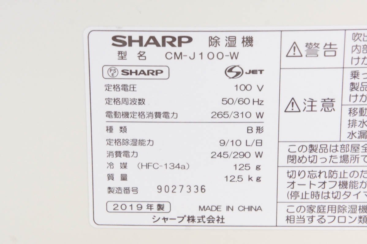 | SHARP シャープ 除湿機 プラズマクラスター CM-J100 | |||