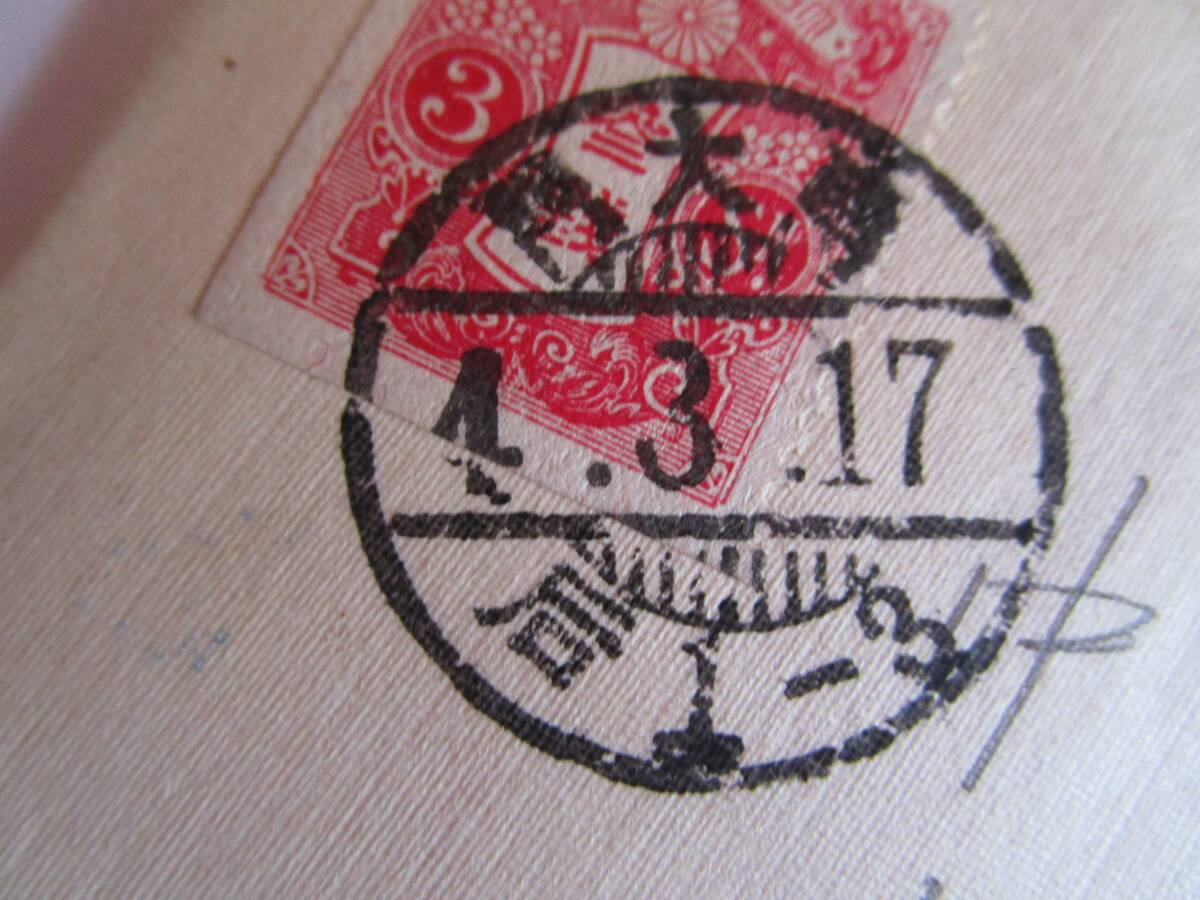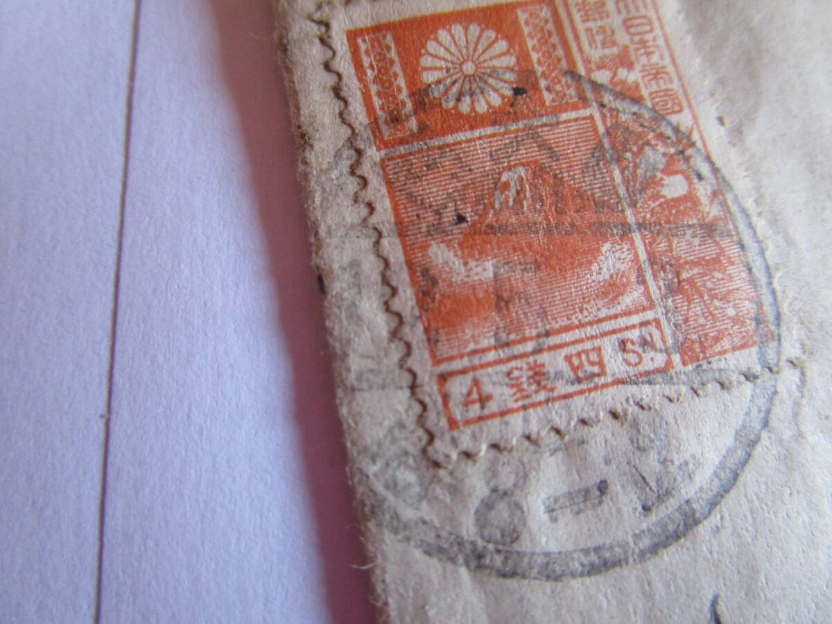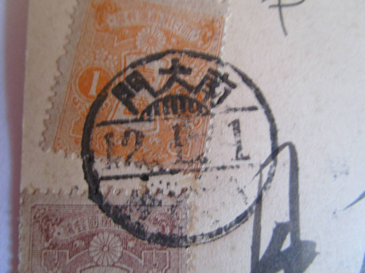 1、朝鮮金剛山風景カラー写真葉書の切手面に旧大正毛紙1・5銭貼・櫛型印南大門(局)4・2・6消(画像3参照)→秋田市・本町宛。