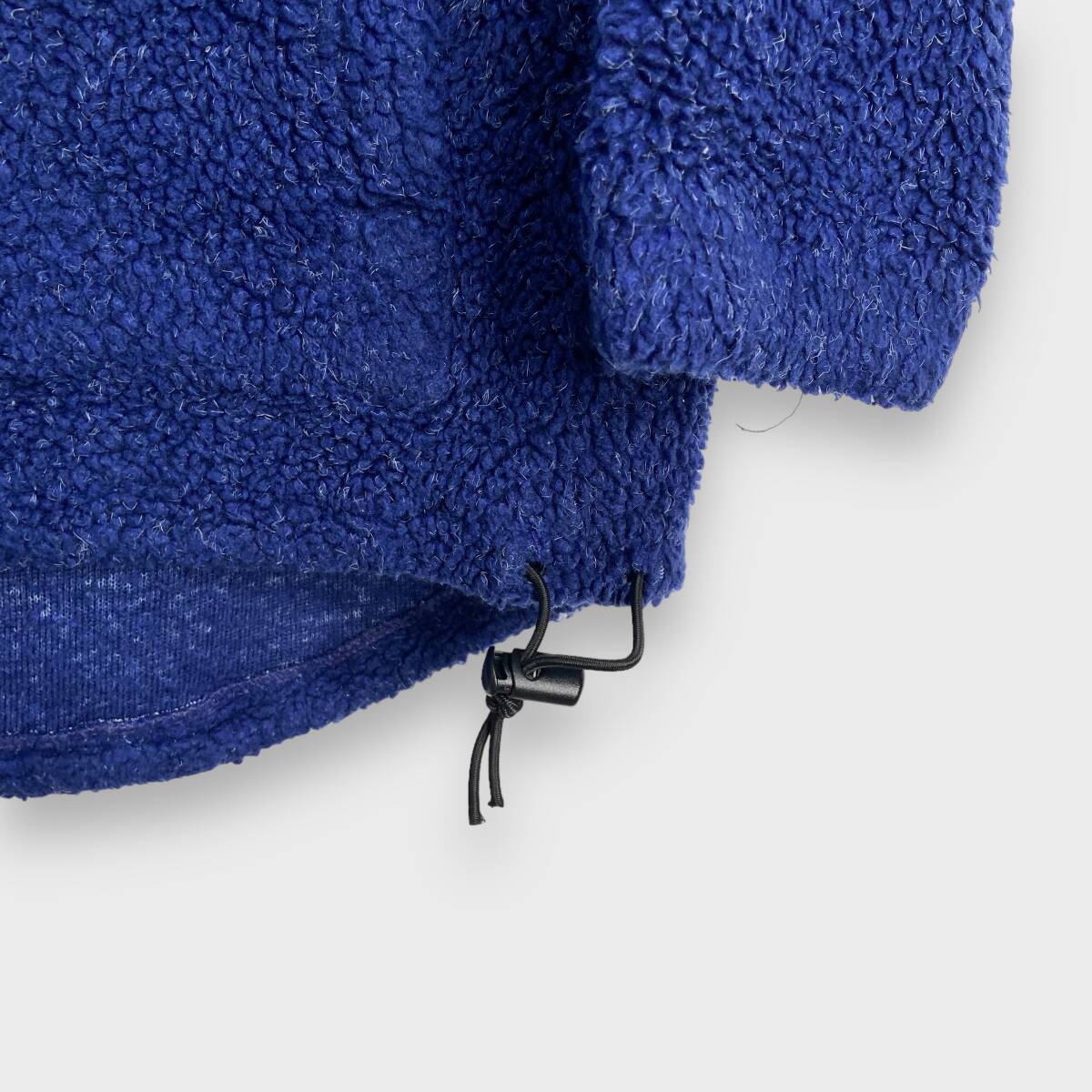 モコモコのパイルフリースを使用。お腹にハンドポケット、裾にドローコードがあります。ハーフジップタイプですのでインナーとのコーディネートも楽しんでいただけます。アウトドアシーンからデイリーユースまでお使いいただけます。
