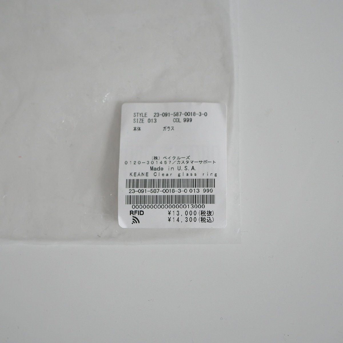 ■アイテム KEANE / クリアガラスリング / 23091587001830