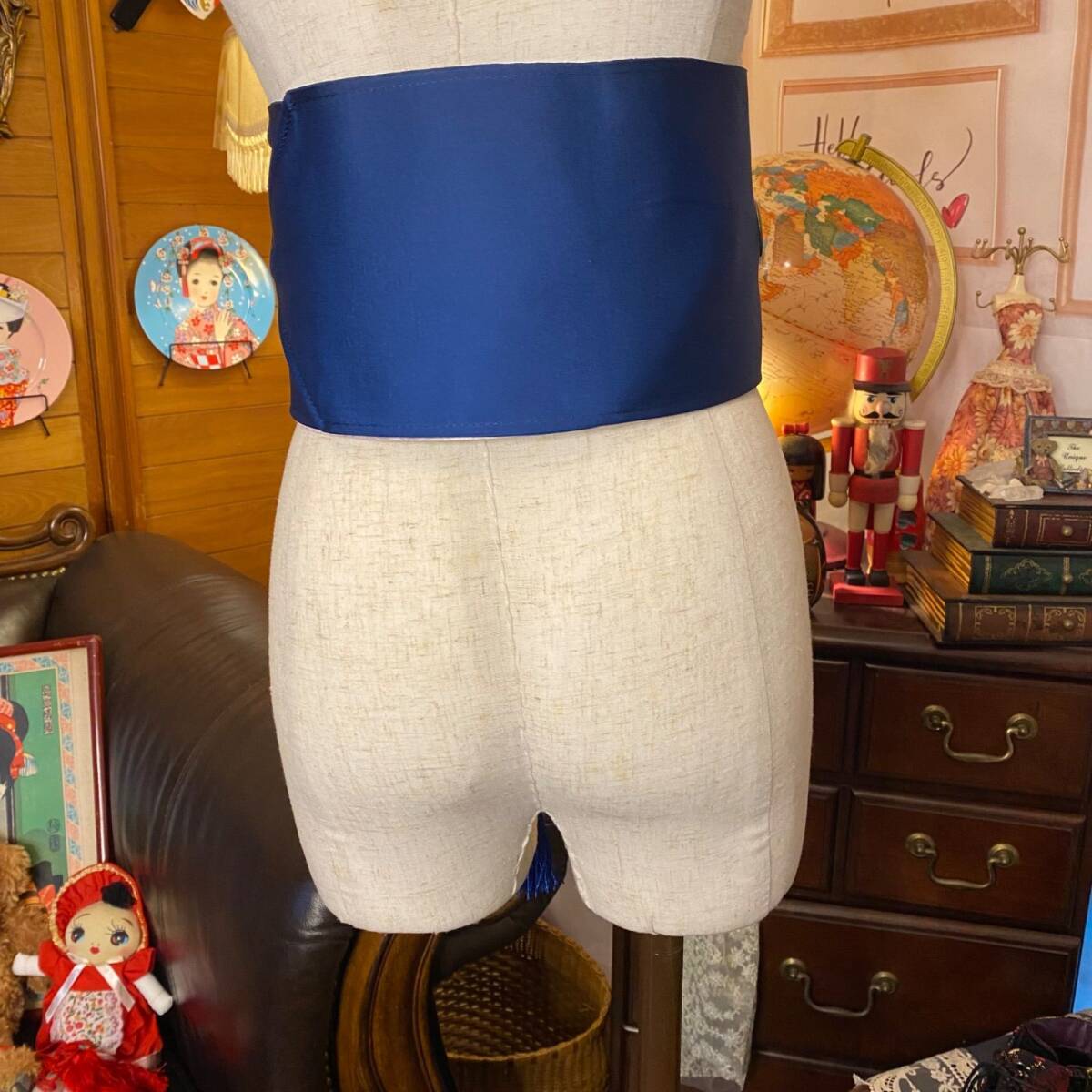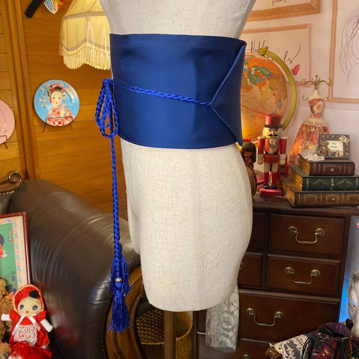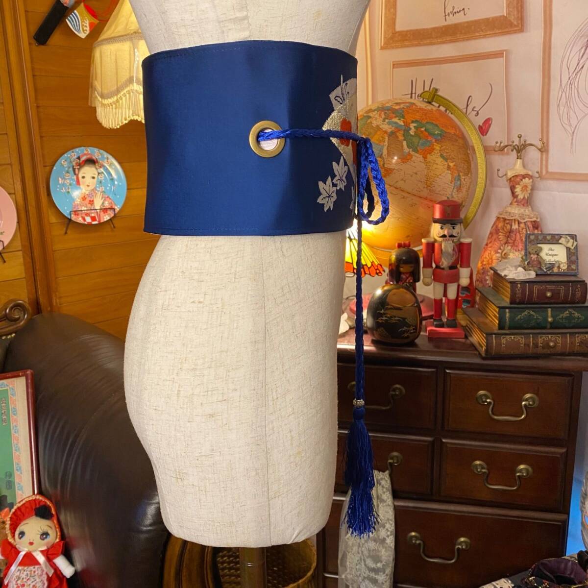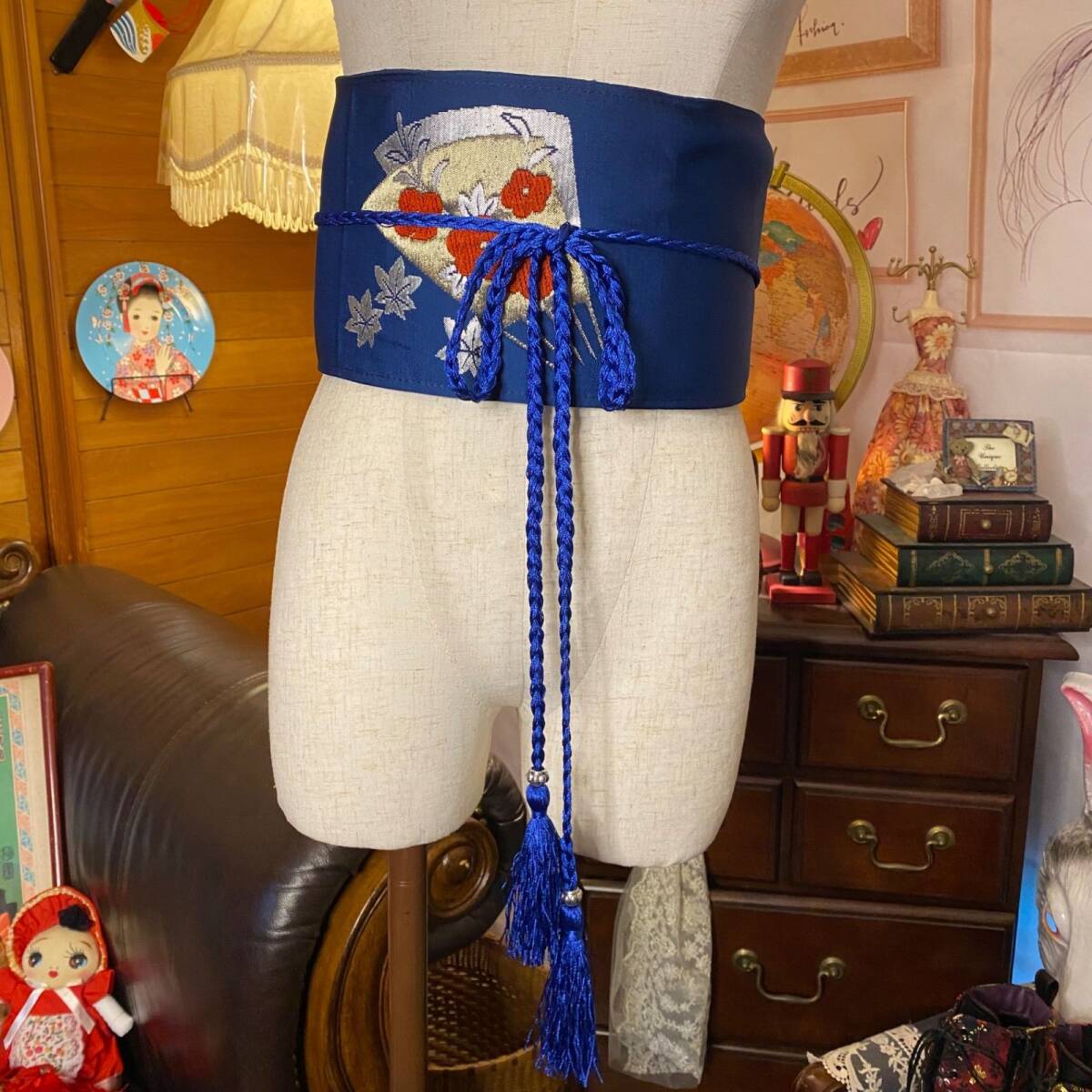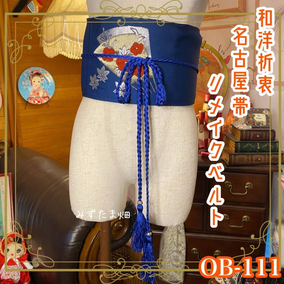 【 和洋折衷 名古屋帯 着物 和装 サッシュベルト 飾り帯 ウエストマーク リメイク ハンドメイド レトロ 古着 OB-111 】