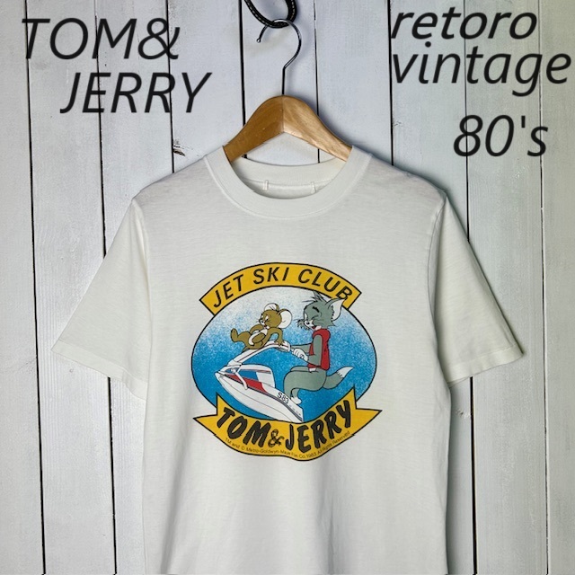 JTP●89 レトロ古着 80s 83年 TOM&JERRY Tシャツ S~M 白 オールド ヴィンテージ トムとジェリー 綿 シングルステッチ
