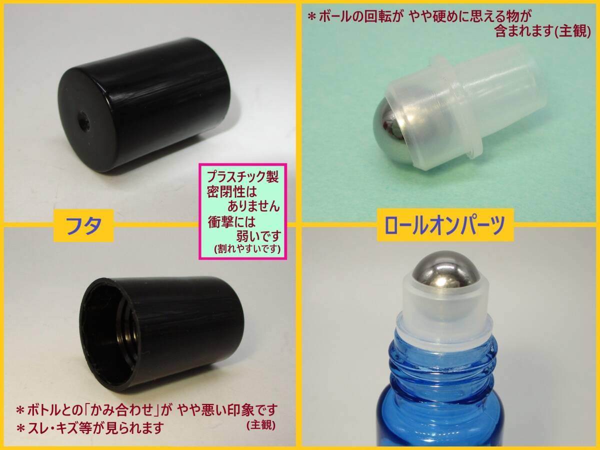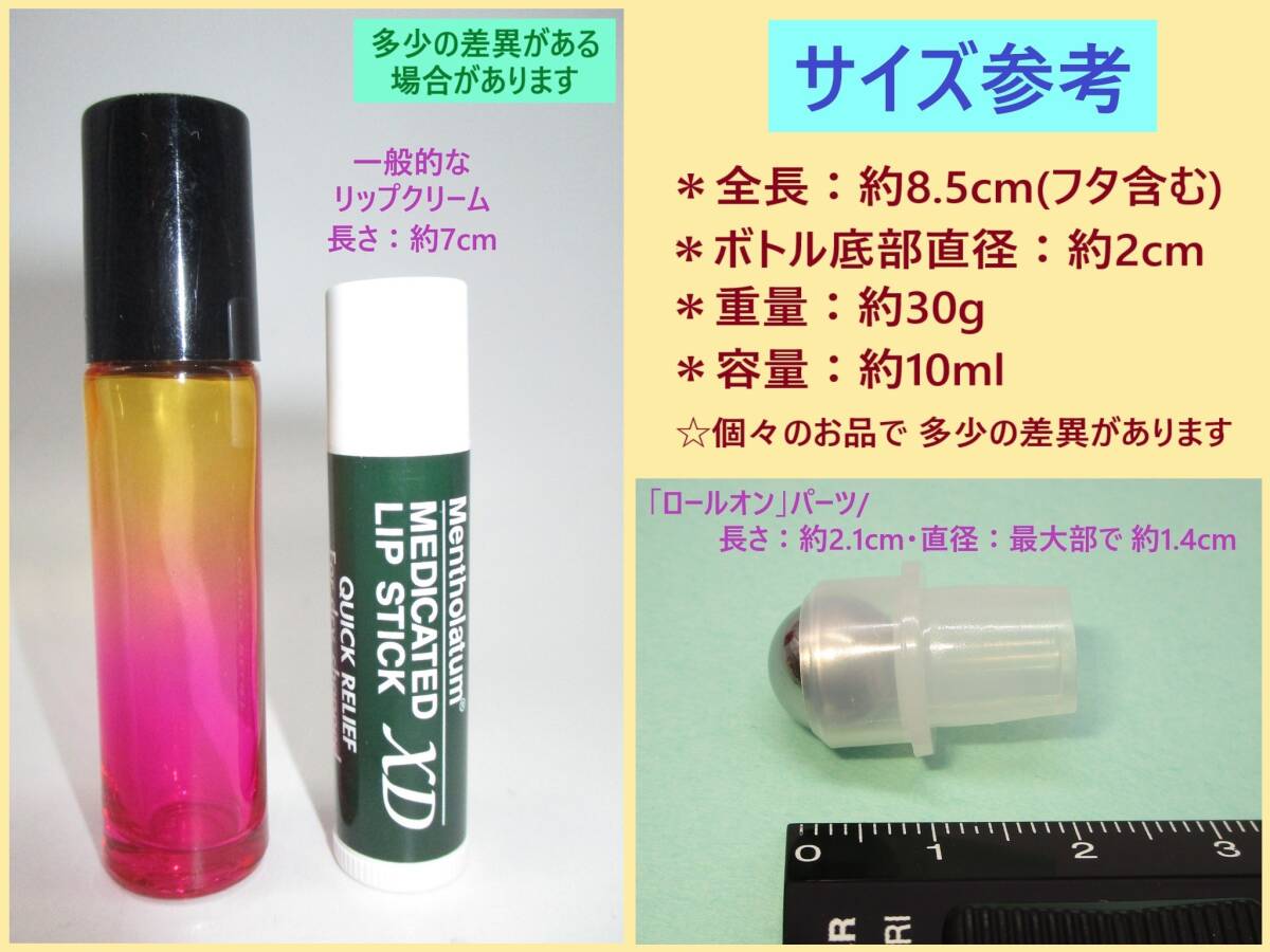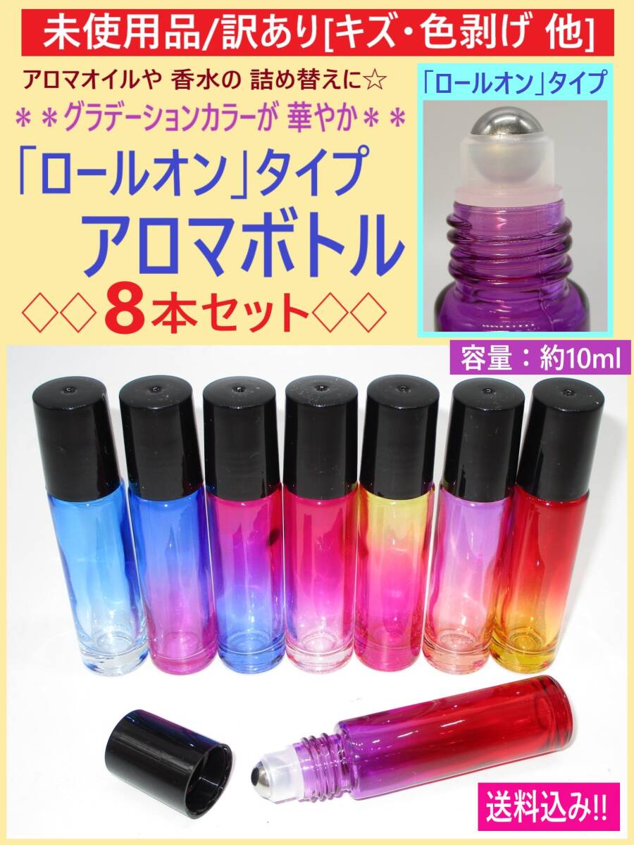 | 「訳あり」扱いの 未使用品です。 専用のパッケージ等の外装は ありません。 グラデーションカラーが華やかな ロールオンタイプの アロマボトル 8本セット商品です。 お手持ちの香水や アロマオイルを詰め替えていただく事で 少量を持ち運びしやすくなります。 透明なガラス瓶に 外から塗装をしている仕様で 塗装皮膜も弱い為 衝撃などによる色剥げが見られます。 また ボトル部・フタ部共に キズ・汚れ等が見られます。 あらかじめご了承ください。 (参考:画像7・9、他) 以上の点より「訳あり」として 安価にて出品いたします。 以下の商品説明をよくご覧になってから ご検討をお願い致します。 神経質な方、完品をご希望の方は 御入札をご遠慮ください。 【商品内容】 カラフルな ガラスの ロールオンタイプ アロマボトル 8本セット [基本的な仕様] *個々のお品で多少の差異あり サイズ: 高さ/約8.5cm(フタ含む)・直径/約2cm 容量:約10ml 重量:1本あたり 約30g 材質:ガラス・スチール・プラスチック 他 その他: ・海外製 メーカー等の詳細は 不明 ・「フタ」は衝撃に弱く 割れやすい傾向があるようです (参考:画像7) ・「フタ」とボトルとの「かみ合わせ」が やや悪い印象です(主観) ・衝撃・テープ・シールなどにより 塗装剥がれが起こります (参考:画像9) ・「ロールオンパーツ」を ボトルにセットした状態で発送いたします ・詰め替え後は 携帯前に 液漏れがないこと・ 必要以上に塗布されないことをご確認下さい *状態などは画像にてご確認ください *実際の商品の色味とは異なる場合があります *画像は 主に 今回お送りするお品を撮影しておりますが 一部 過去の出品画像を流用しています あらかじめご了承ください 【状態等】 ・未使用品です。 ・専用のパッケージ等の外装は、ありません。 ・海外製につき、 塗装のムラ・瓶自体の歪み・製造上のキズ等、 作りに粗さがある場合があります。 美品・完品をご希望の方はご遠慮ください。 ・長期保存品につき、 汚れ・埃の付着等がある場合がありますが、 御容赦下さい。 ・商品は、簡易的に保護し、 一般的な茶封筒にて発送いたします。 (発送時の状態/画像10) 以上の点をご承知いただける方のみ、 ノークレーム・ノーリターンにて、 ご検討下さい。 | ||
