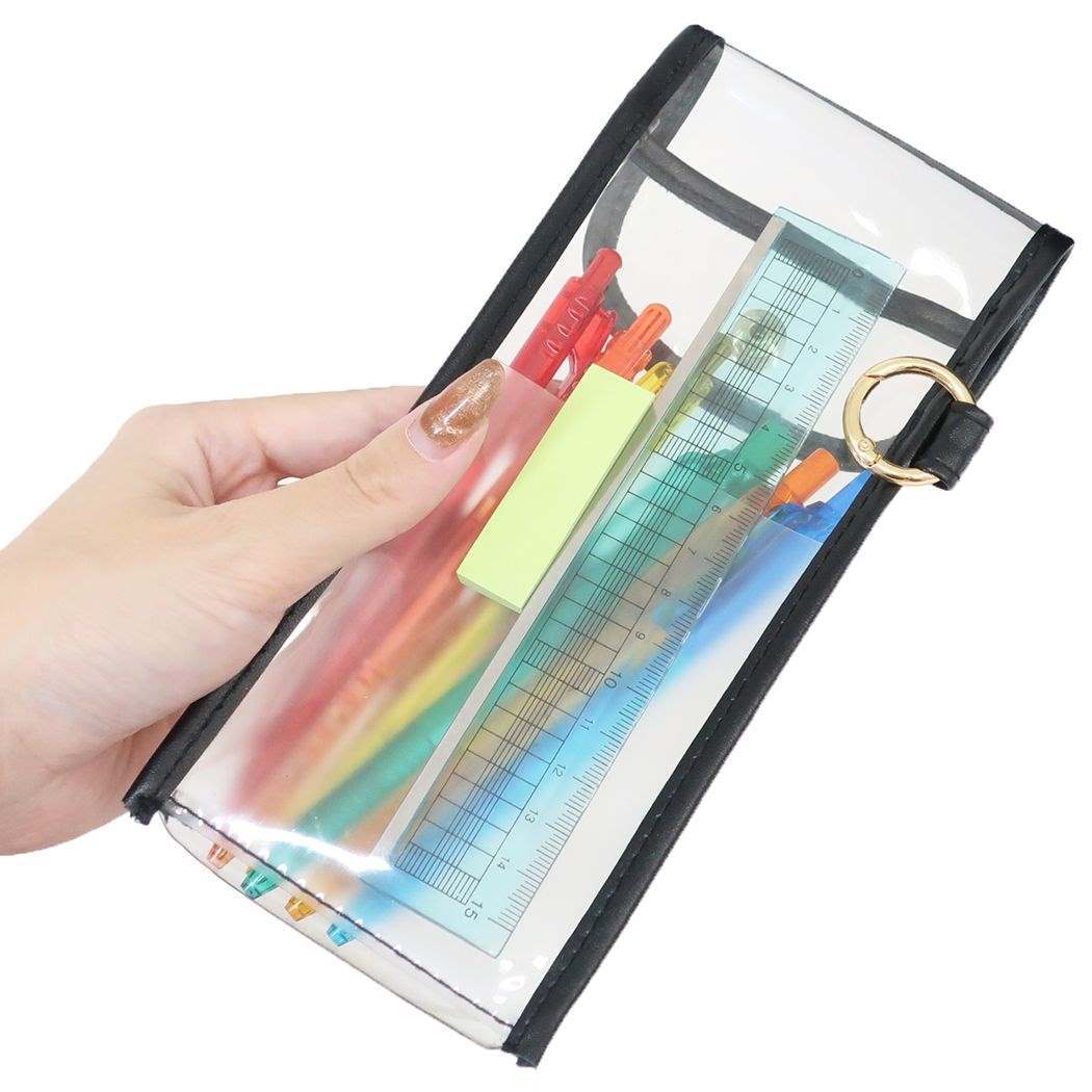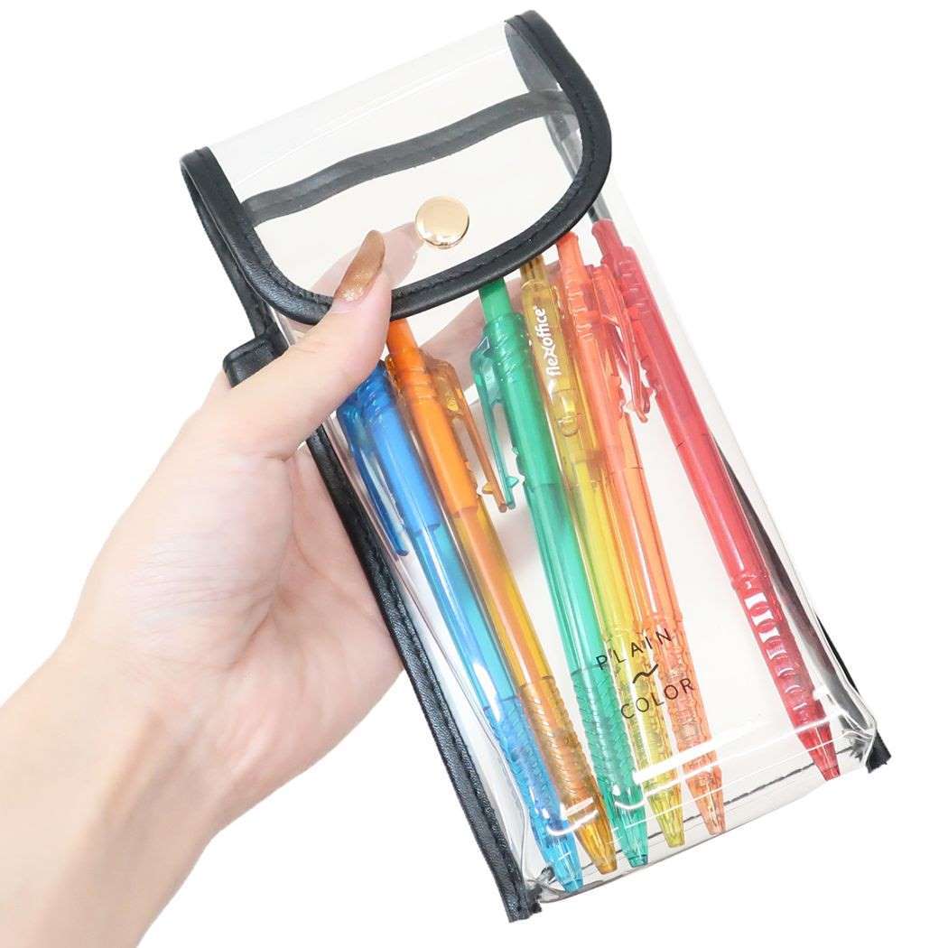 シンプルで使いやすい縦型タイプのクリアペンポーチ 新学期にぴったりのキュートなステーショナリーシリーズこちらは透け感がおしゃれな[PICK ONE ペンポーチ]シンプルで使いやすい縦型タイプのクリアペンケースですマチ付き、内ポケット付きで写真やシールを入れてカスタムしたり、使い方は自由!ペンや文具などしっかり収納できますかわいい筆箱いろいろあるのでお気に入りを揃えてくださいサイズ:約90x190x20mm素材:PVC