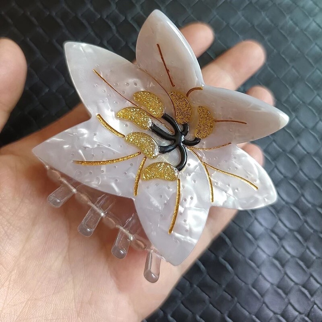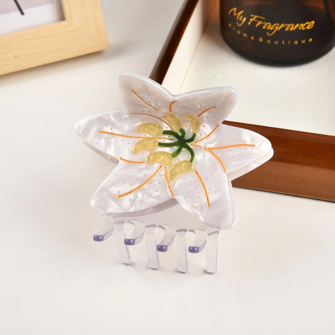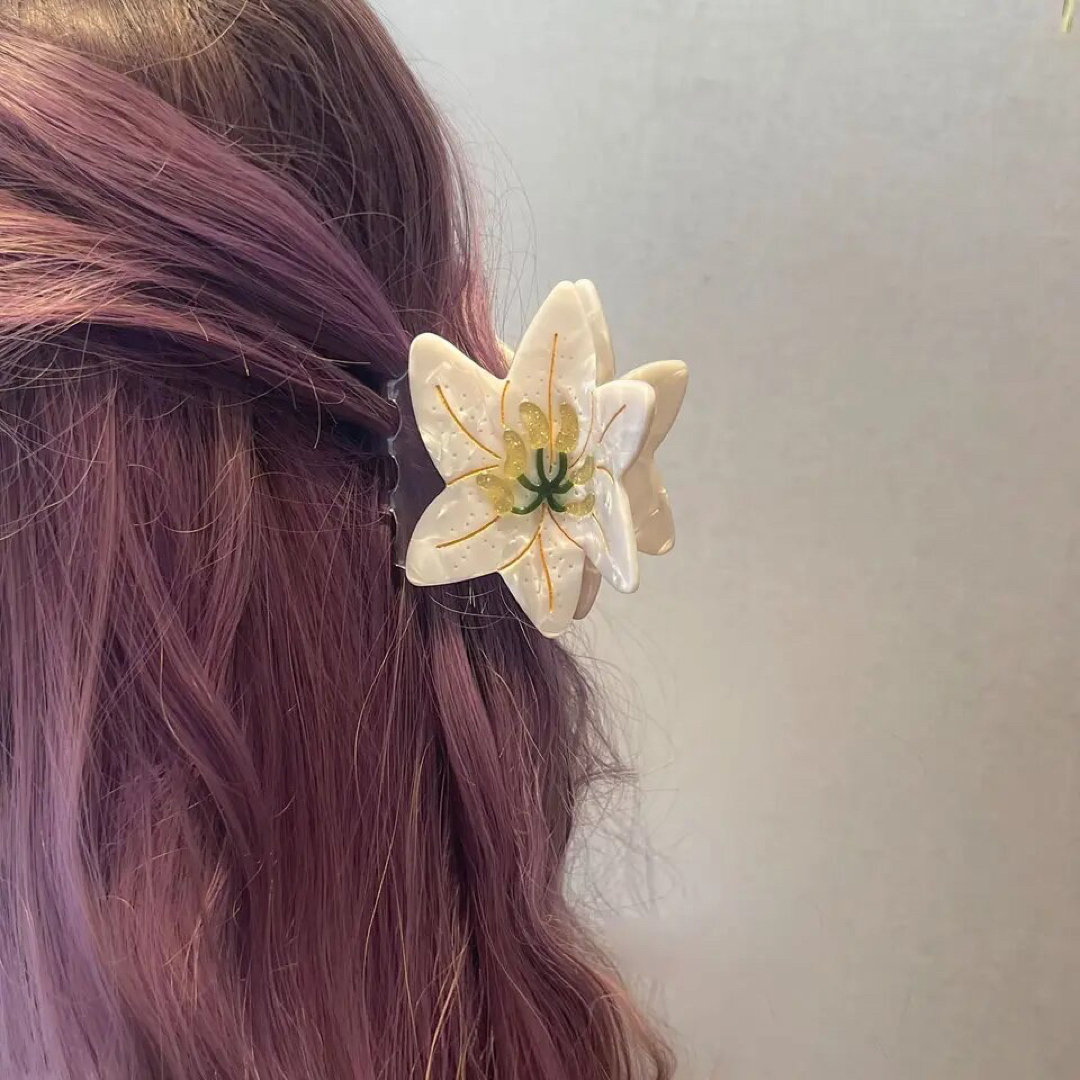 Lilium Hair Claw インポート フランス ヘアクリップ フラワー ボタニカル 花 百合 ユリ ホワイト