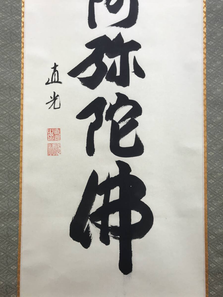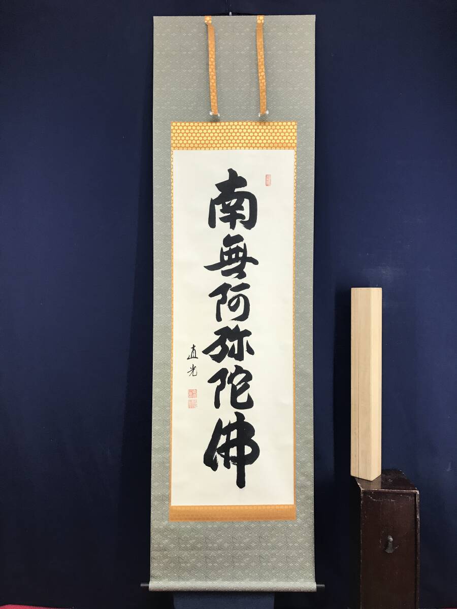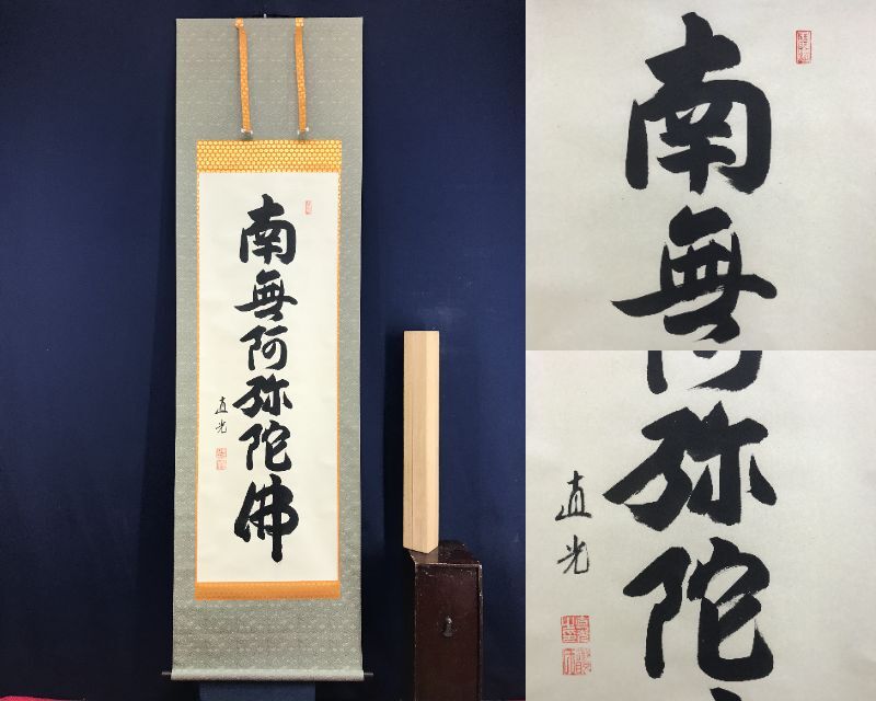 真作/米崎直光/南無阿弥陀佛/六字名号/払事掛/掛軸☆宝船☆AG-445