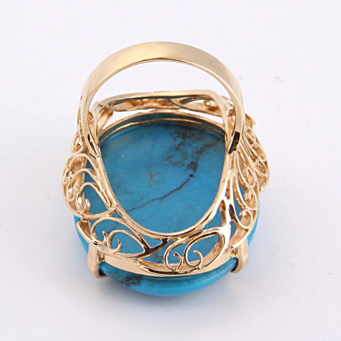 K18アンティーク枠が美しいトルコ石リング指輪12.5号です。
