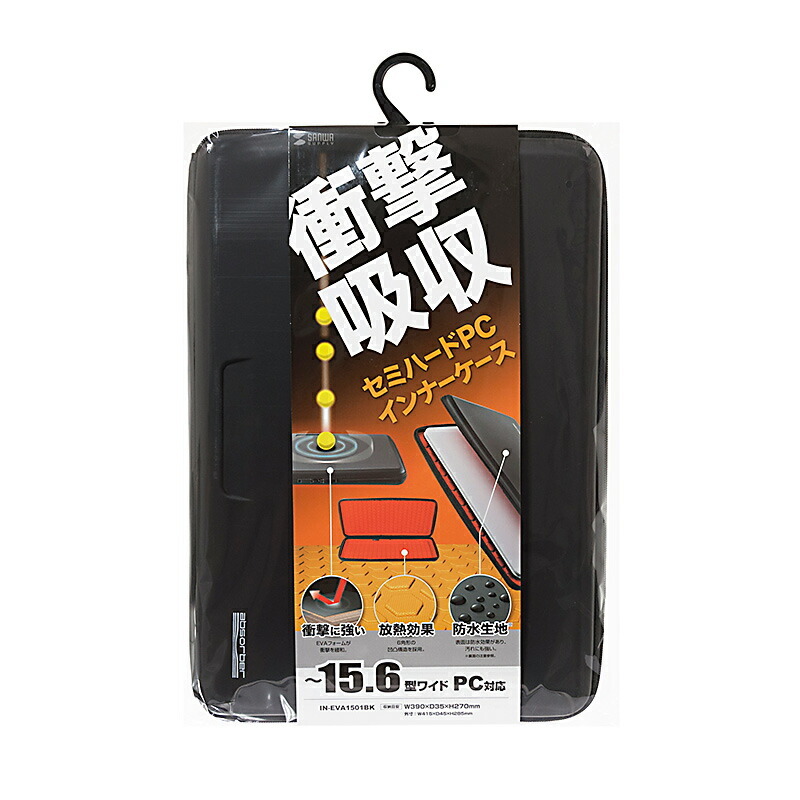 立体EVAフォームで衝撃からパソコンを強力に保護するセミハードインナーケース。15.6インチワイド対応・ブラック。