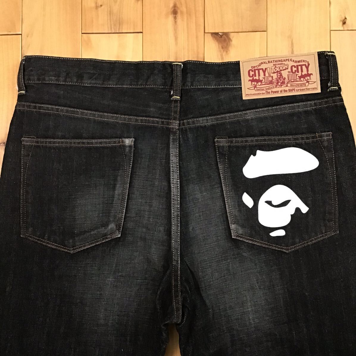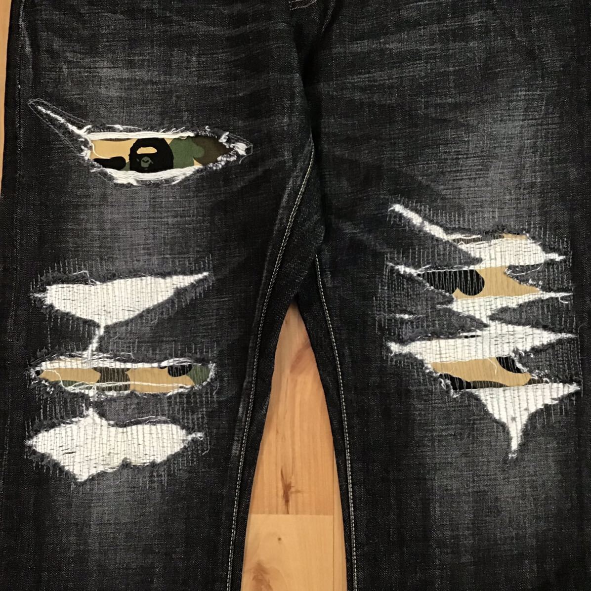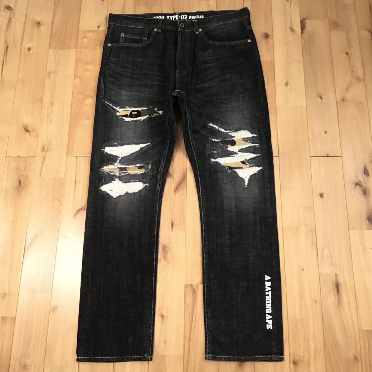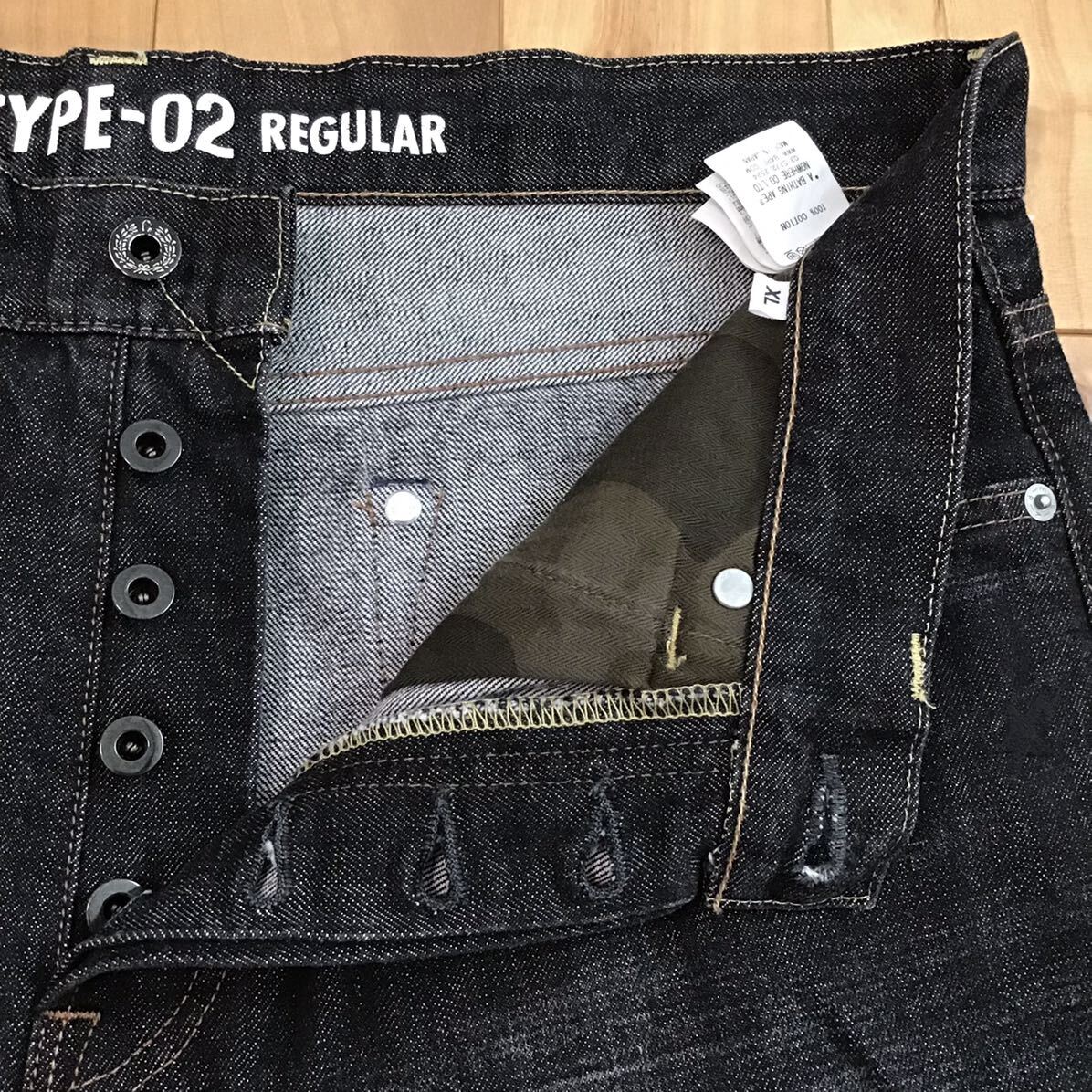 a bathing ape TYPE02 ブラックデニムパンツ 1st camo yellow XLサイズ です★