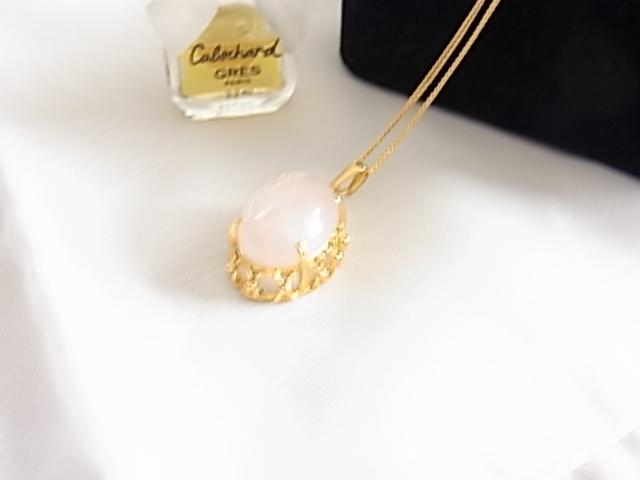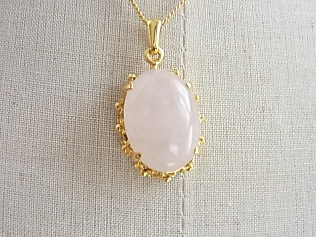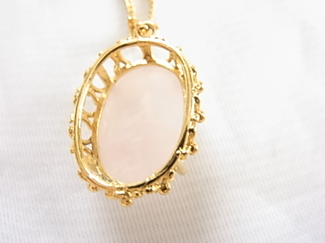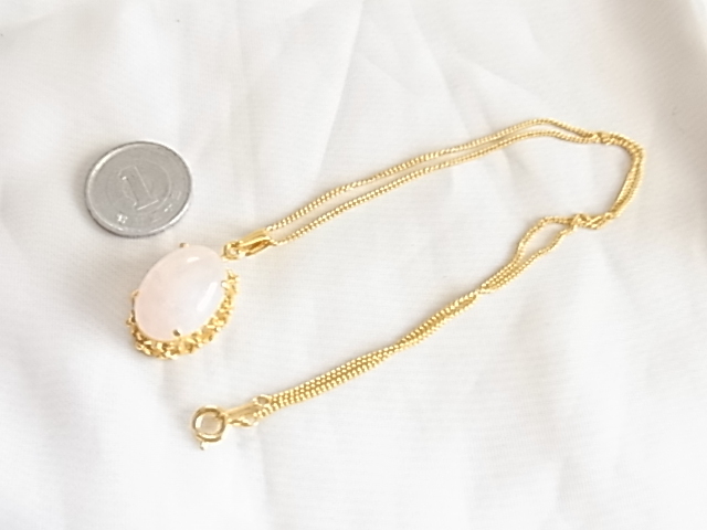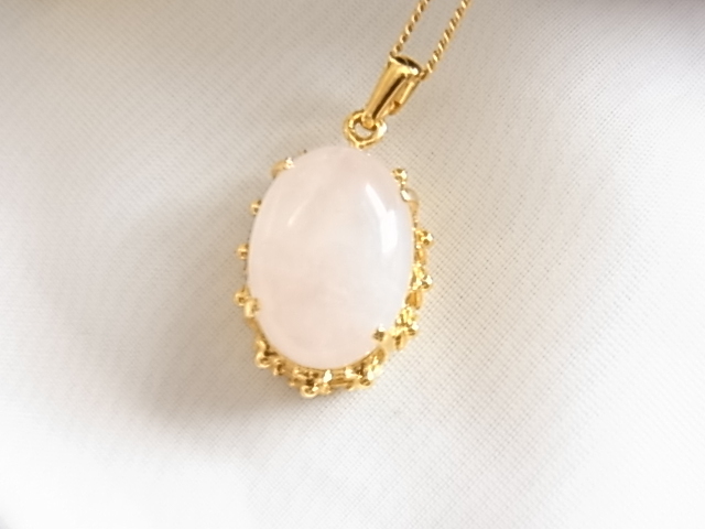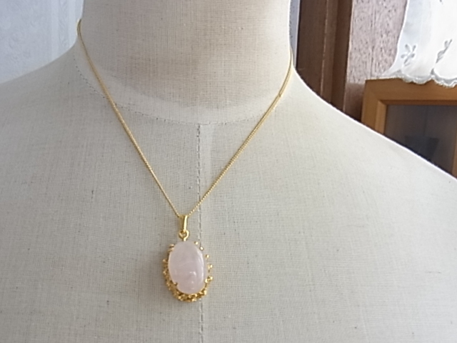 ◆ビンテージ/ヴィンテージ 恋愛の石 パワーストーン ローズクオーツ 可愛いフレッシュピンクの石 楕円形デザイン レトロネックレス